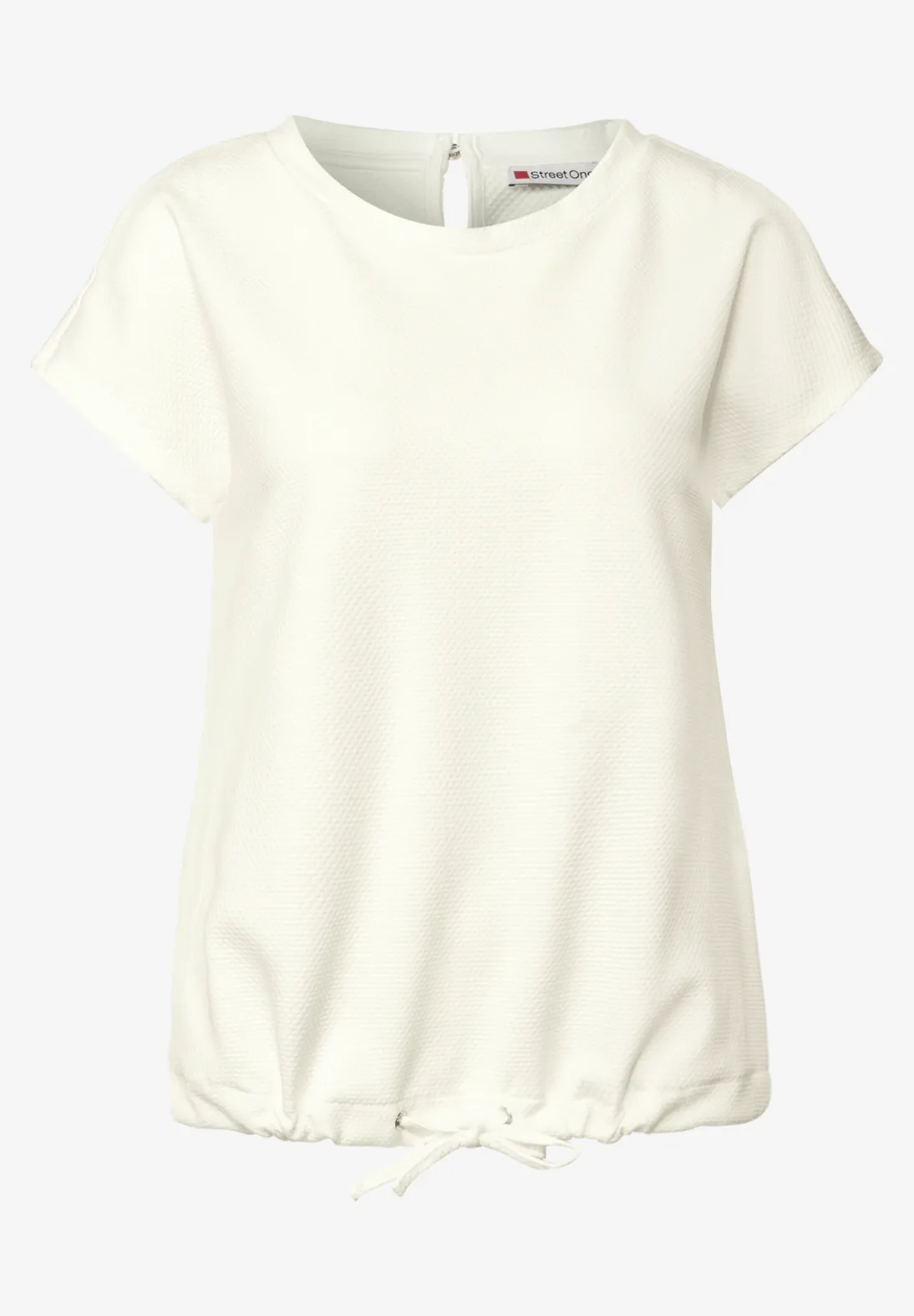 Street One shirt with short sleeves, a round neckline and a fine texture. This Street One shirt has a drawstring at the hem.