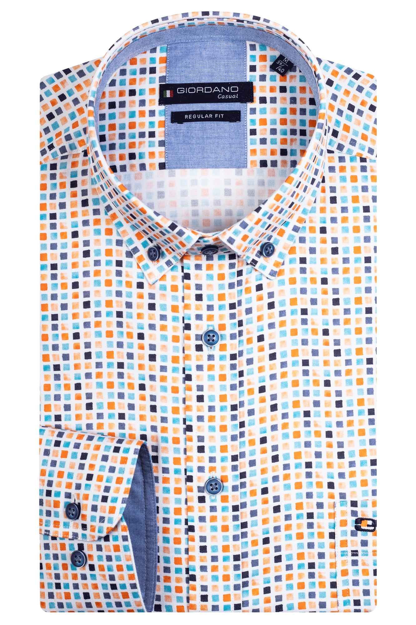 Giordano shirt with short sleeves, a button-down collar and a regular fit. This Giordano shirt has a chest pocket and an allover squares print.