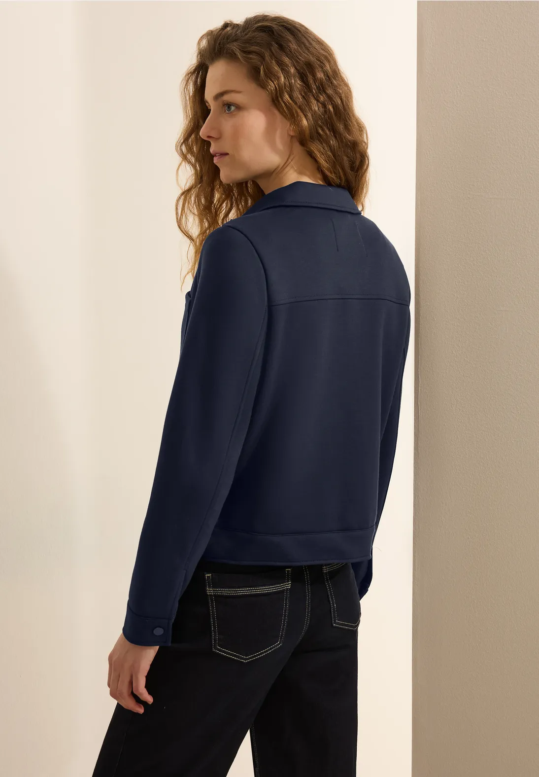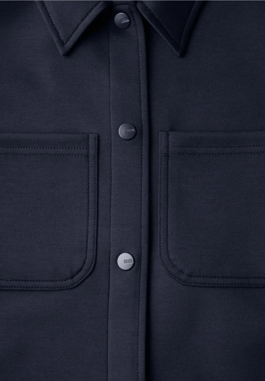 Short Cecil sweat jacket with long sleeves, shirt collar and chest pockets. This Cecil jacket has a button closure, side pockets and is made of a comfortable material mix with stretch.