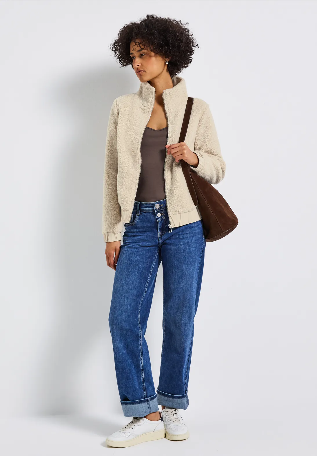 Short Street One teddy jacket with a standing collar, side pockets, and an elasticated hem. This Street One jacket is made of soft, cosy fabric and has a comfortable fit.