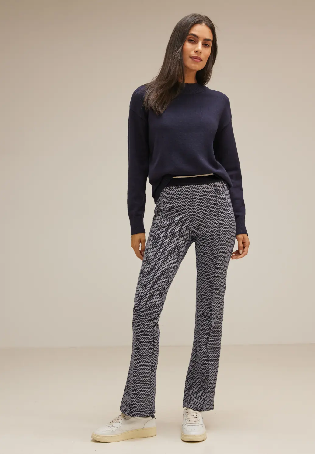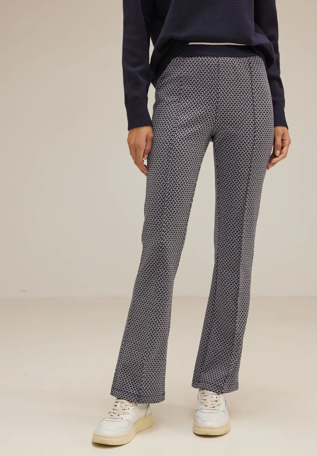 Street One Hope. Street One pants with a skinny fit, high waist and bootcut legs. These Street One pants have an allover jacquard print, back pockets and an elastic waistband.