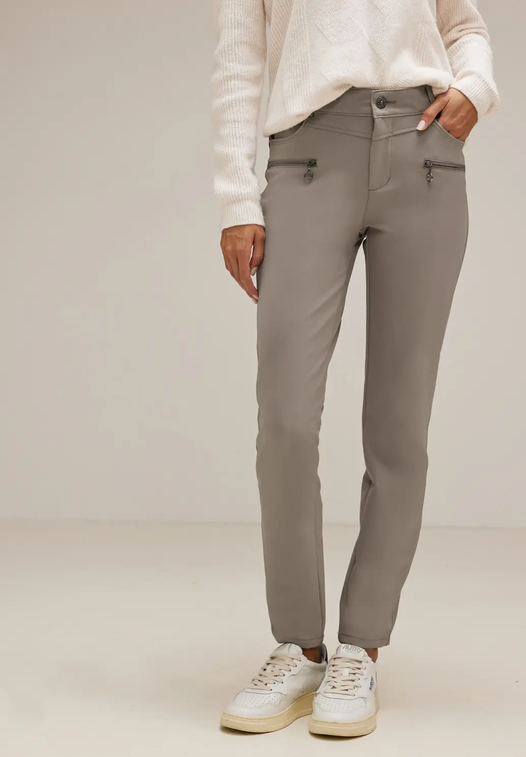 Street One York. Street One pants with a slim fit, middle waist and slim legs. These Street One pants are made with a high proportion of stretch for a comfortable, good fit. The pants are closed with a button and zip.