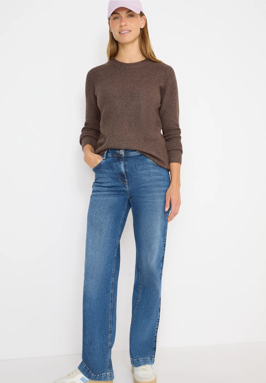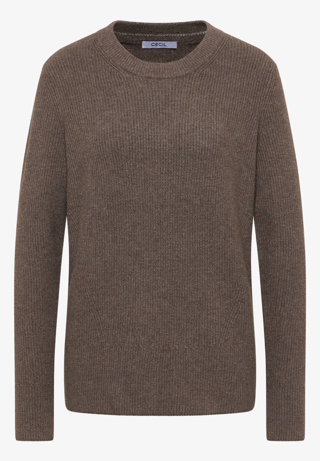 This CECIL women’s sweater in the warm shade Mushroom Taupe Melange features delicate knitted details that add depth and character to the look. The classic round neckline and ribbed cuffs on the sleeves create a timeless silhouette.