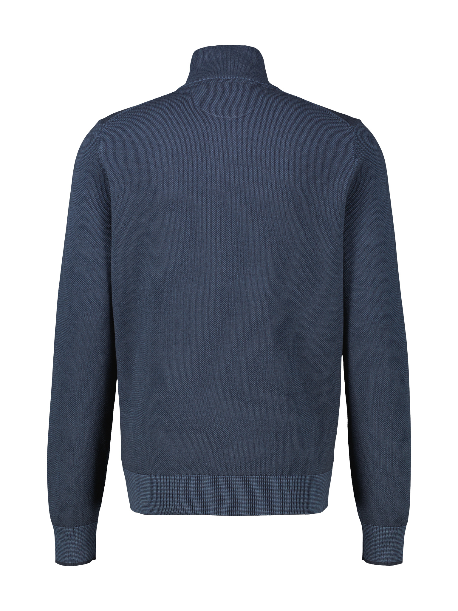 Sporty Lerros cardigan with long sleeves, a standing collar and a knit structure. This Lerros cardigan is made from a soft cotton quality.