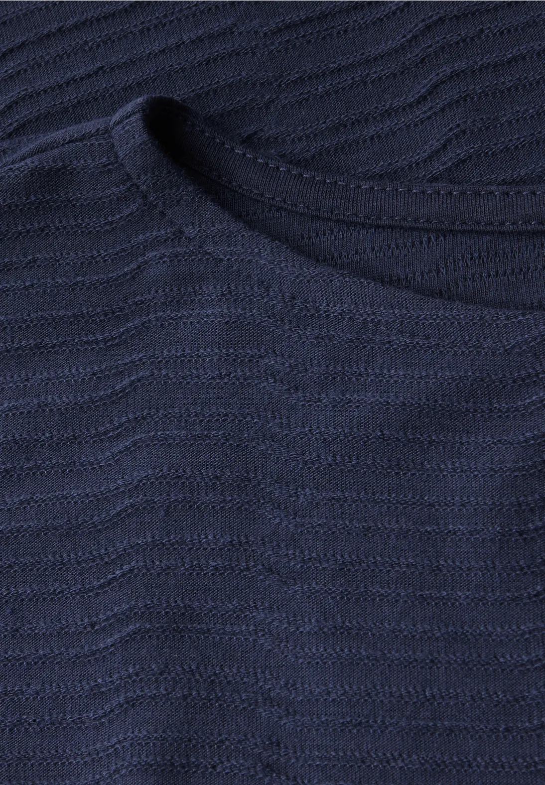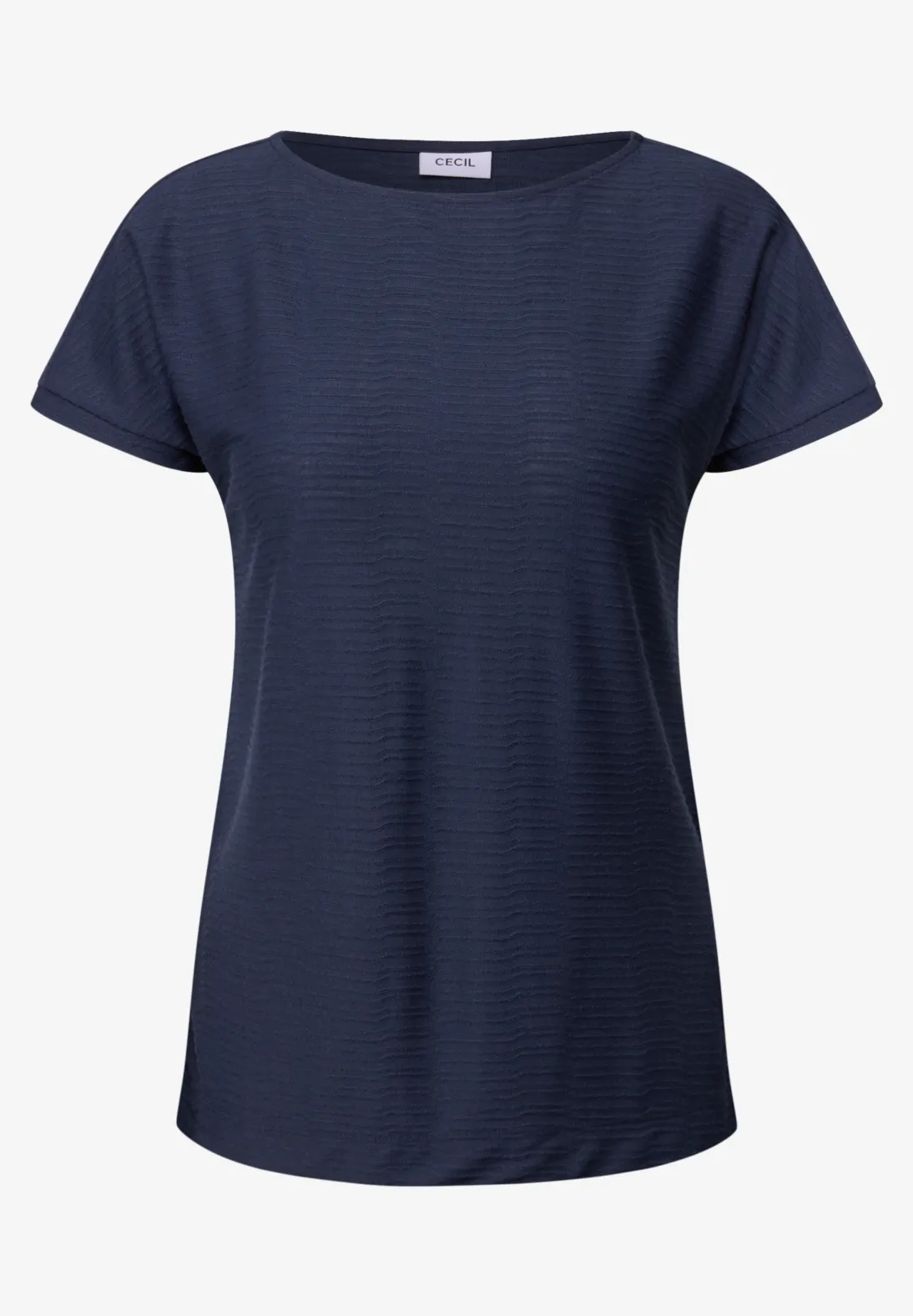 Cecil short sleeve shirt with a boat neckline and a striped texture.