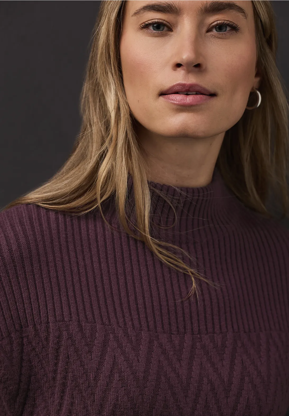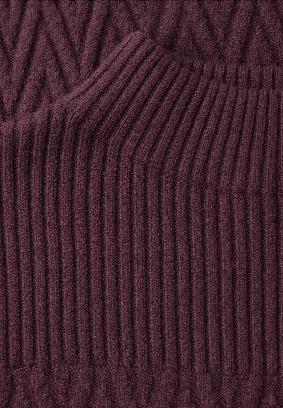 Refresh your wardrobe with this Street One women’s knitted sweater in the bold, stylish shade Jazz Berry. Featuring an exciting mix of textures and a soft viscose blend, this sweater offers both comfort and modern appeal. The warm turtleneck and long sleeves make it ideal for chilly autumn and winter days. A feminine must-have that elevates every seasonal outfit!
