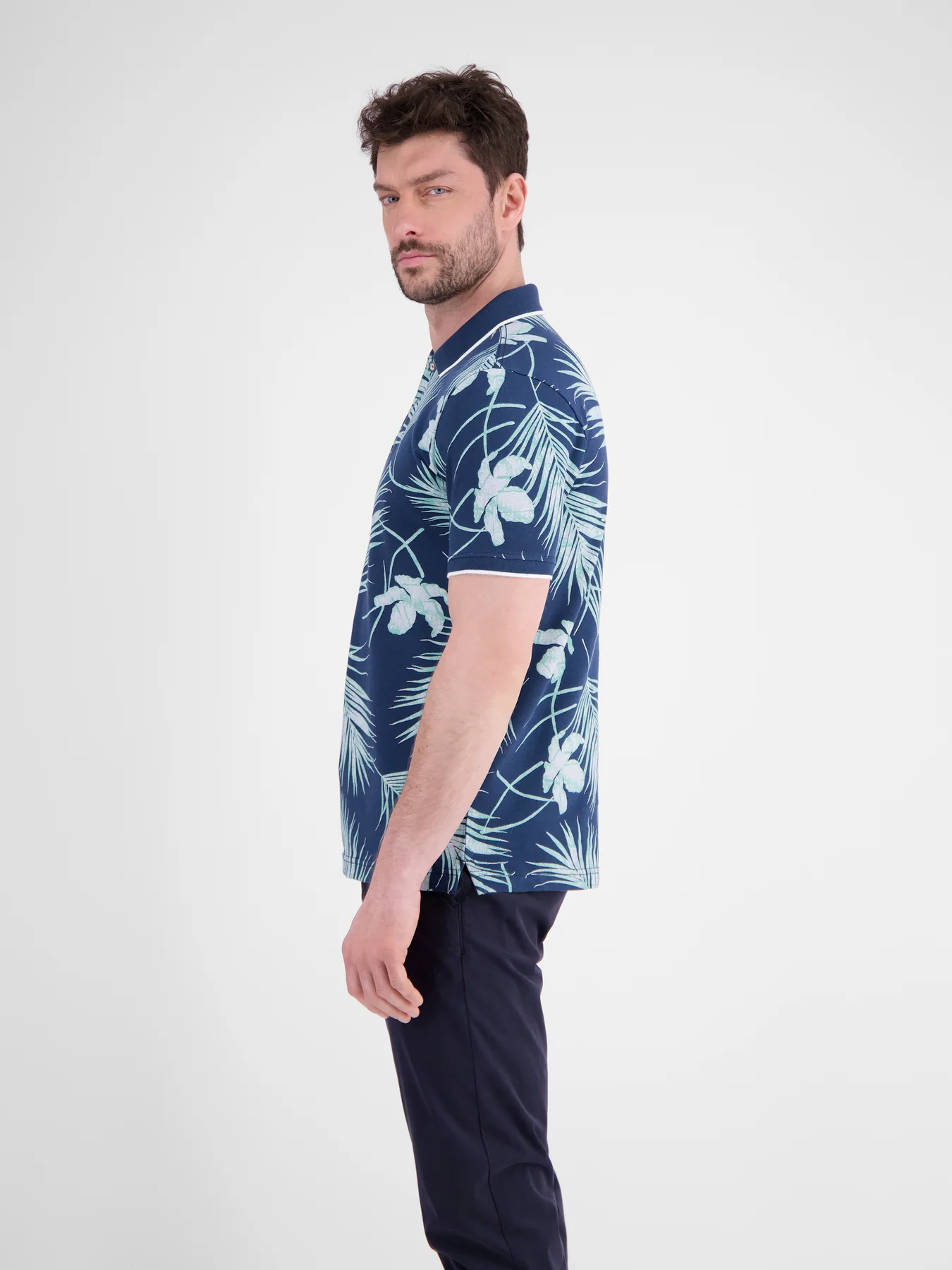Lerros polo shirt with short sleeves, an allover print and a collar with button closure.