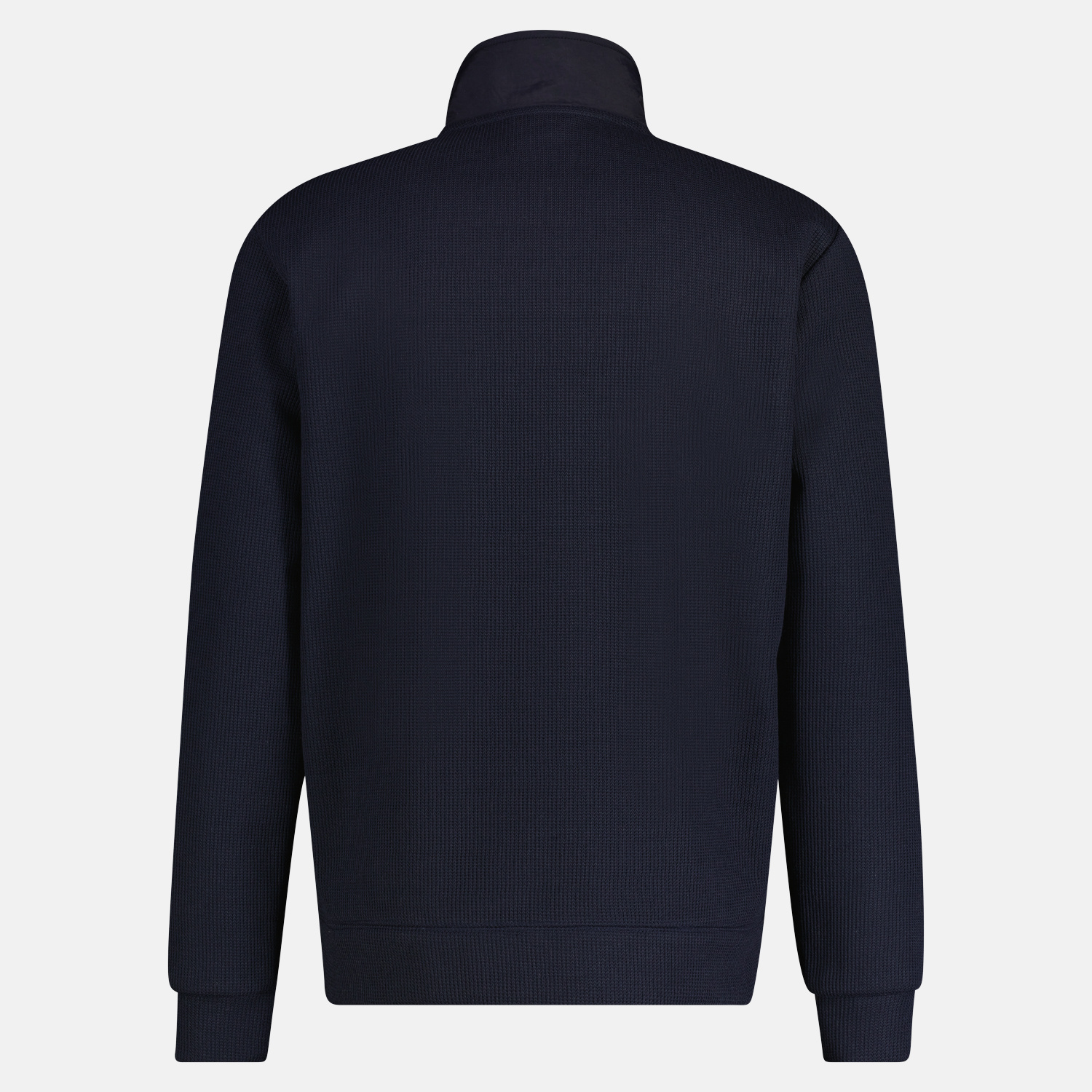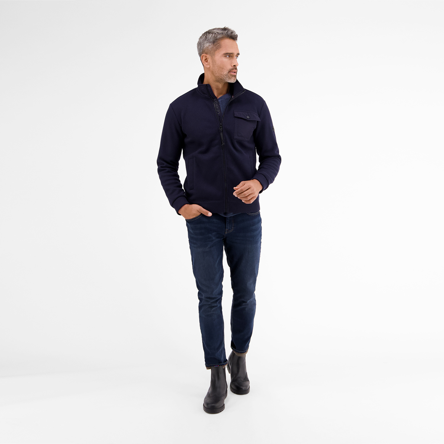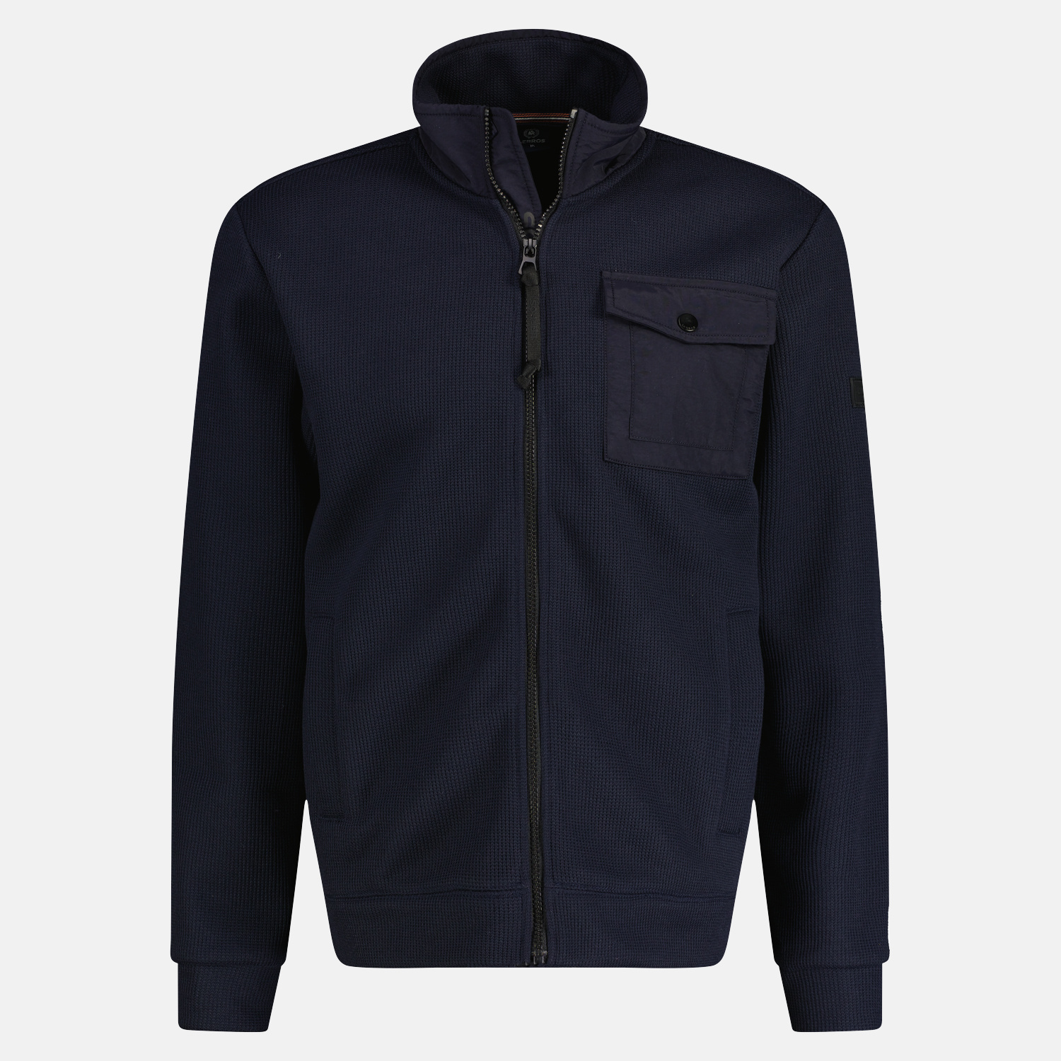 Sporty Lerros sweatcardigan with long sleeves, a standing collar and side pockets. This Lerros cardigan is made from a soft quality.