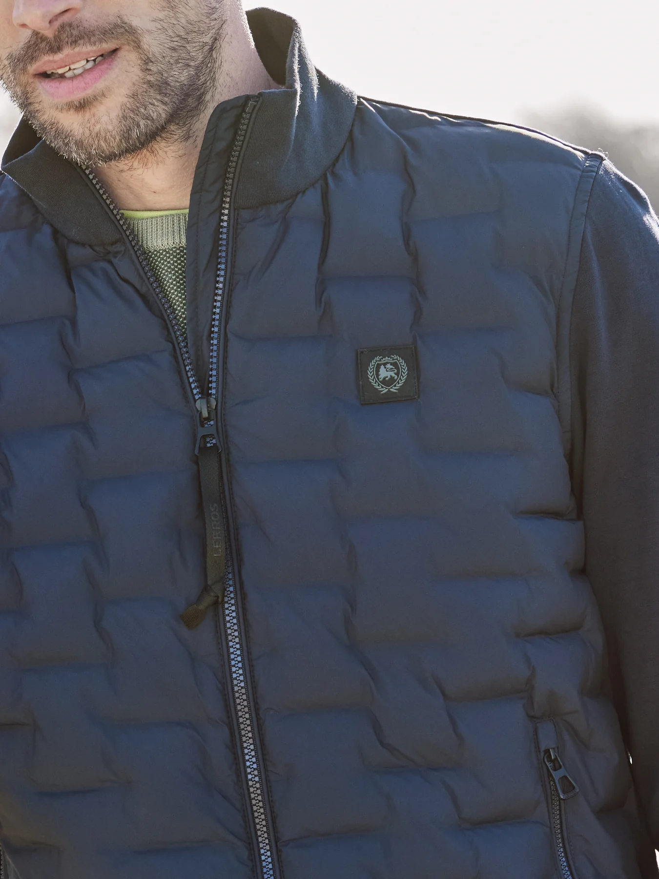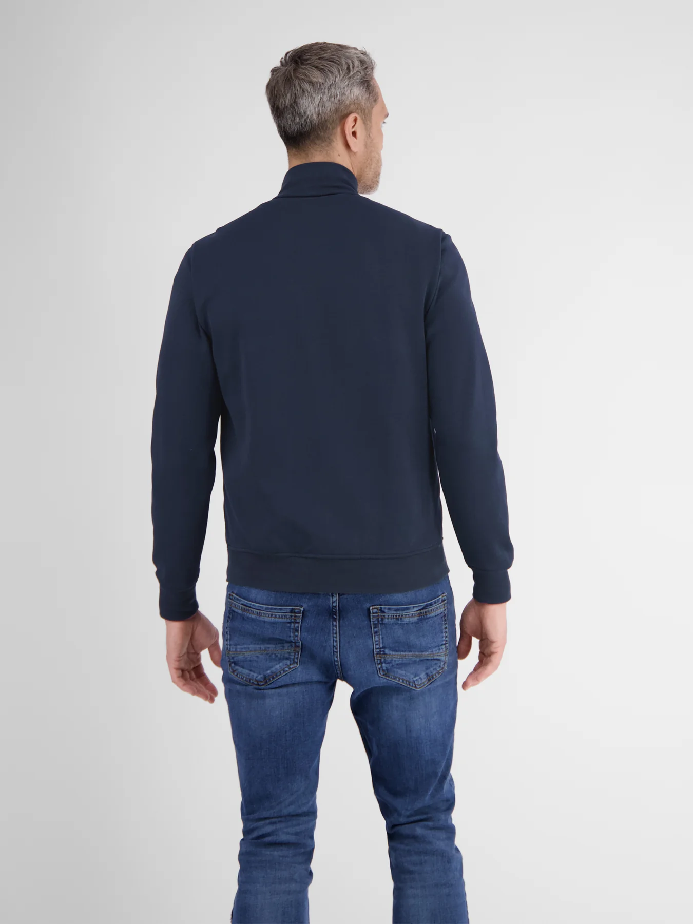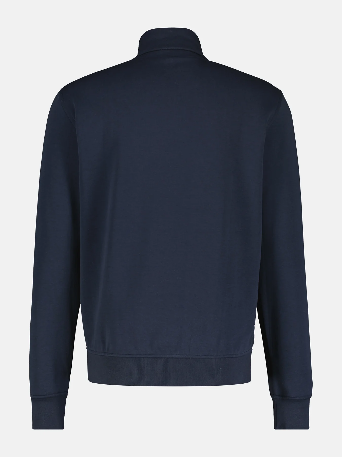 Lerros sweat jacket with a standing collar, a zipper and a sporty padded front. This Lerros sweat jacket has ribbed cuffs at the waistband and hem. The side pockets are finished with a zipper.