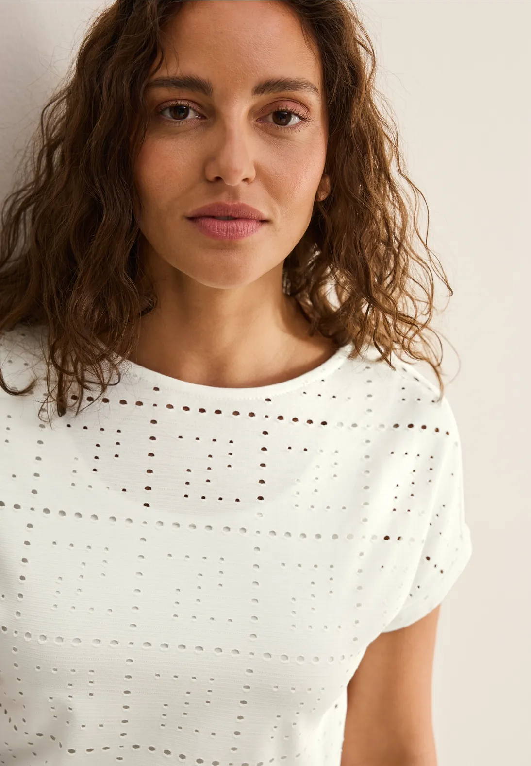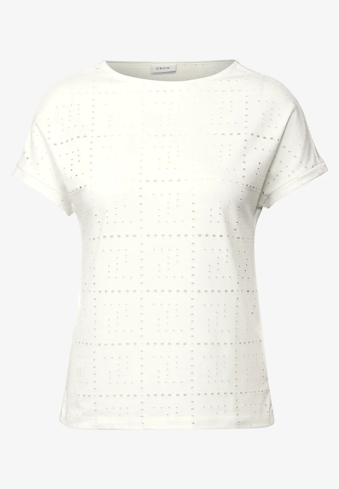 Cecil shirt with short sleeves, a round neckline and an openwork pattern. This Cecil shirt is made of a material mix with stretch for a comfortable fit.