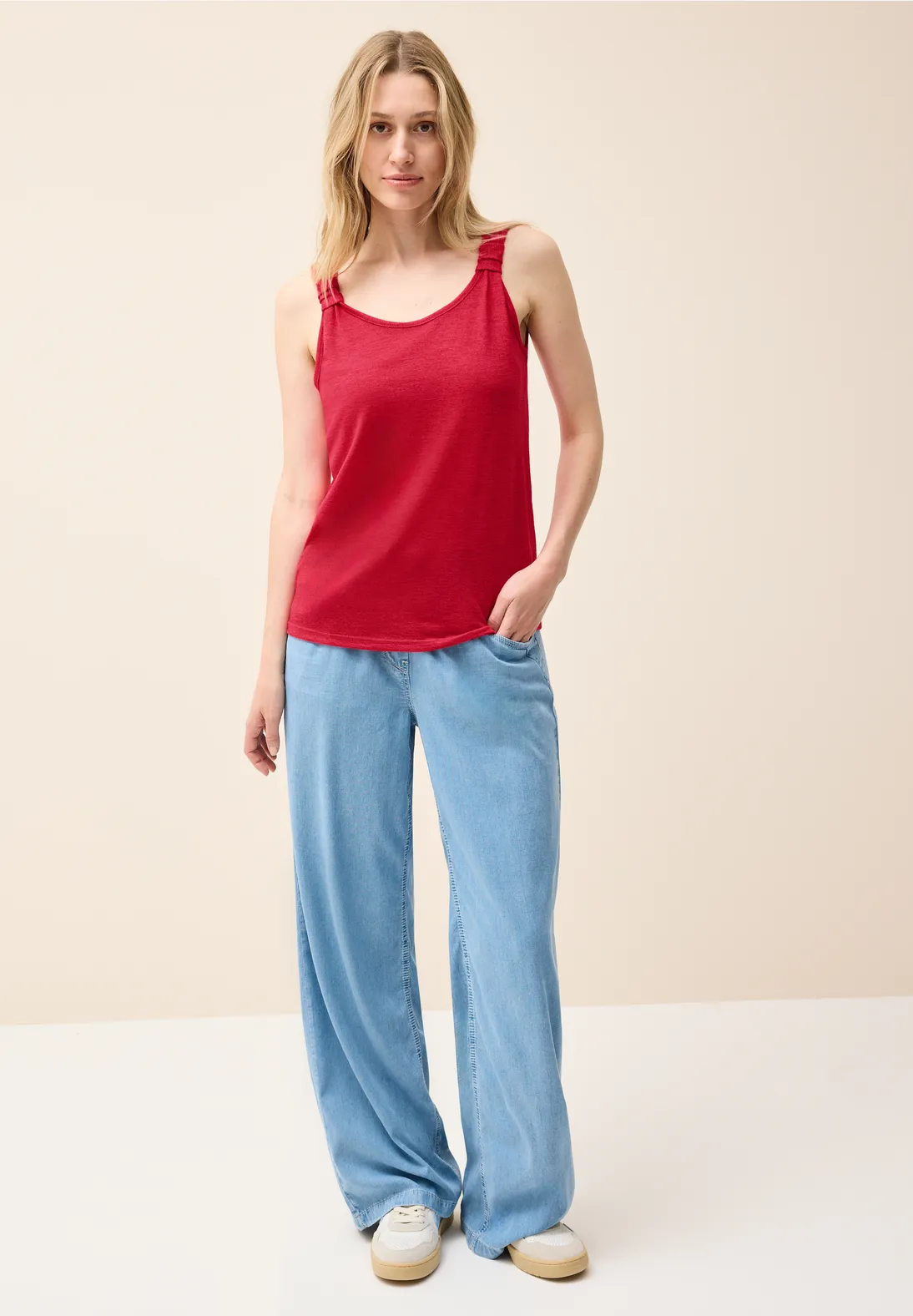 Strappy Cecil top with a round neckline, a graphic print and a knot detail on the shoulders. This Cecil top has a knitted look with a special texture and a pleasant wearing comfort.