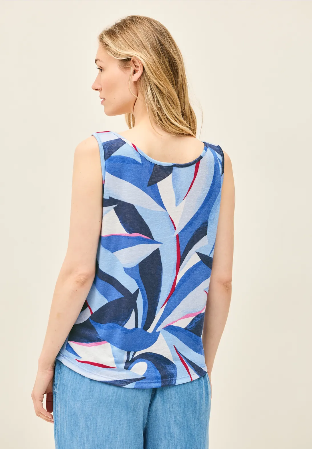 Strappy Cecil top with a round neckline, a graphic print and a knot detail on the shoulders. This Cecil top has a knitted look with a special texture and a pleasant wearing comfort.