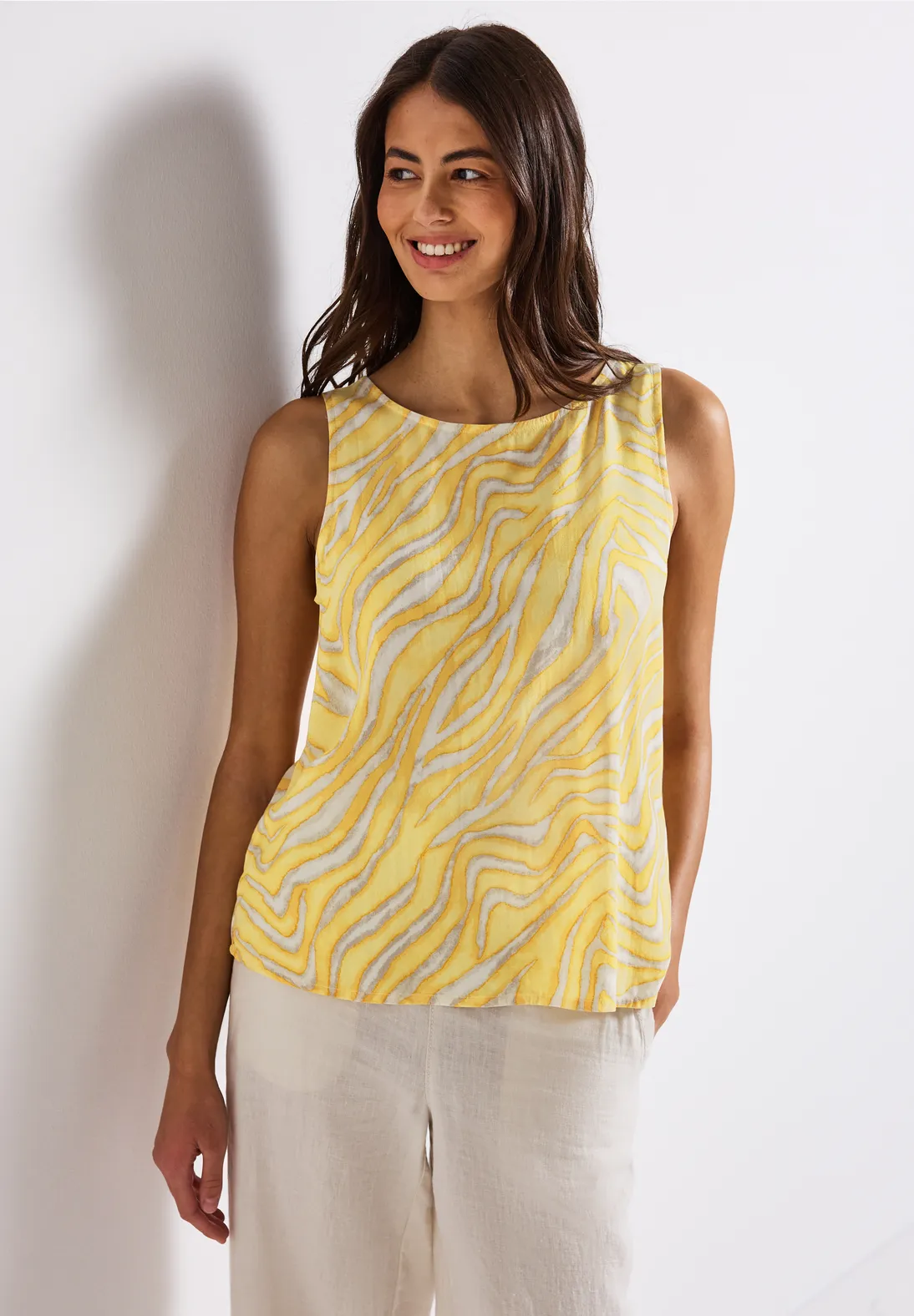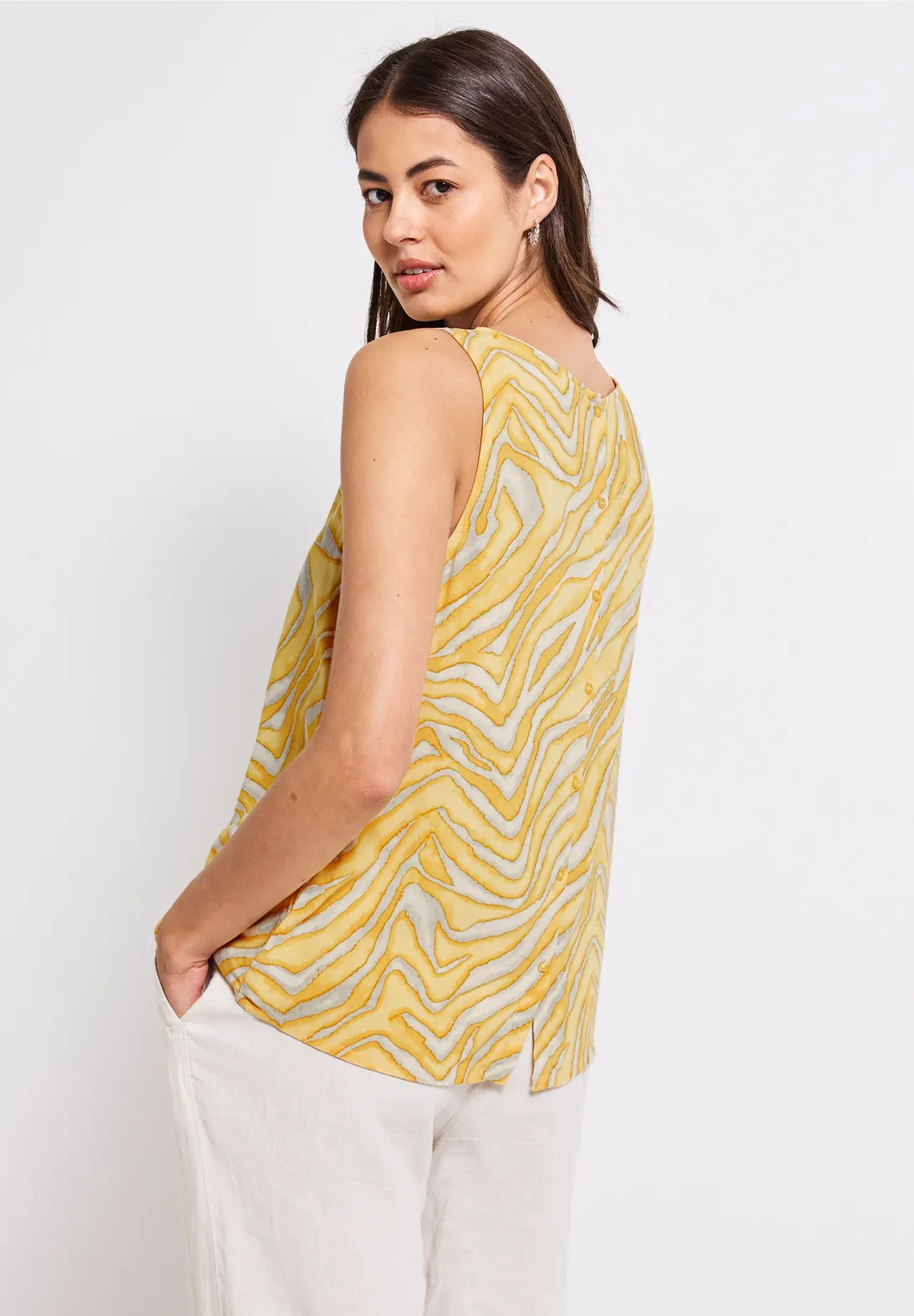 Sleeveless Street One blouse top with a round neckline, graphic print and a button closure on the back.
