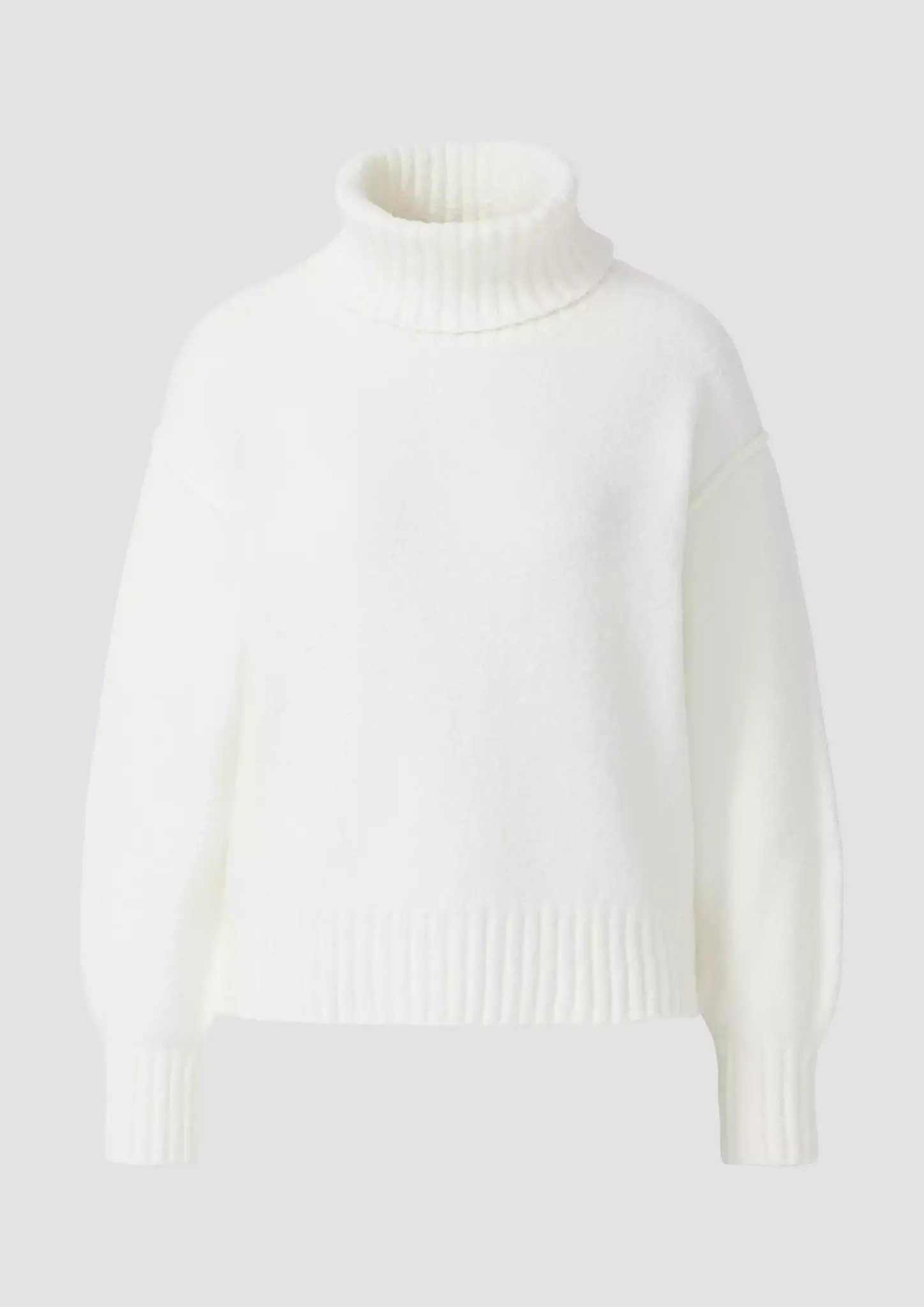 Knitted S. Oliver sweater with long sleeves and a wide turtleneck. This S. Oliver sweater features ribbed knit details and is made of a soft cotton blend.