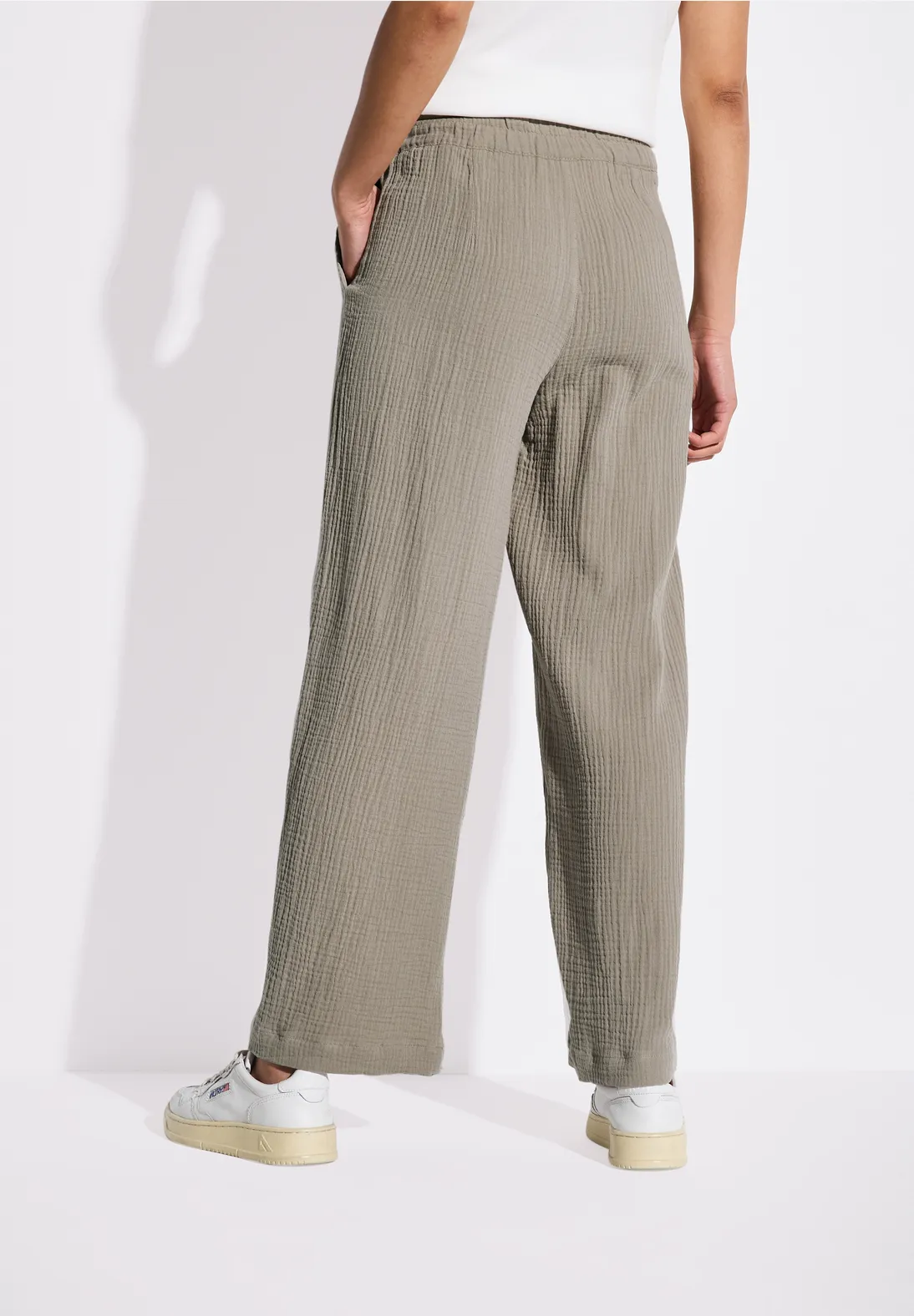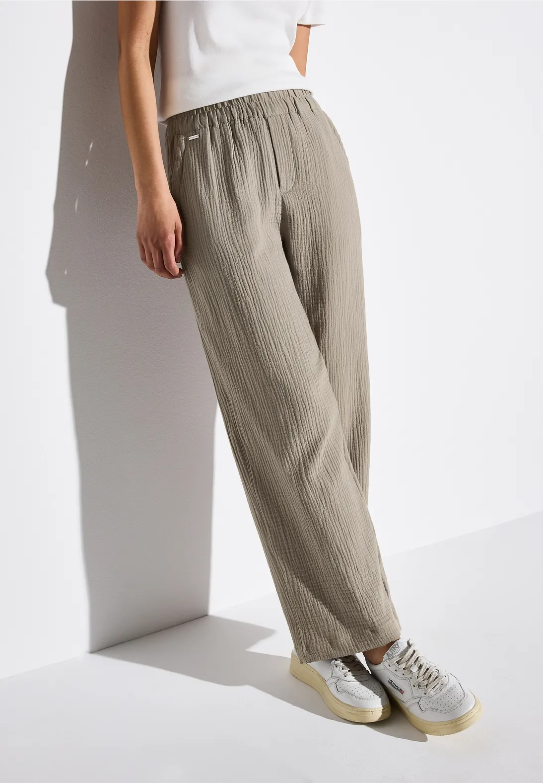 Street One trousers with a loose fit, high waist and wide legs. These Street One trousers have side pockets and are made from pure cotton.