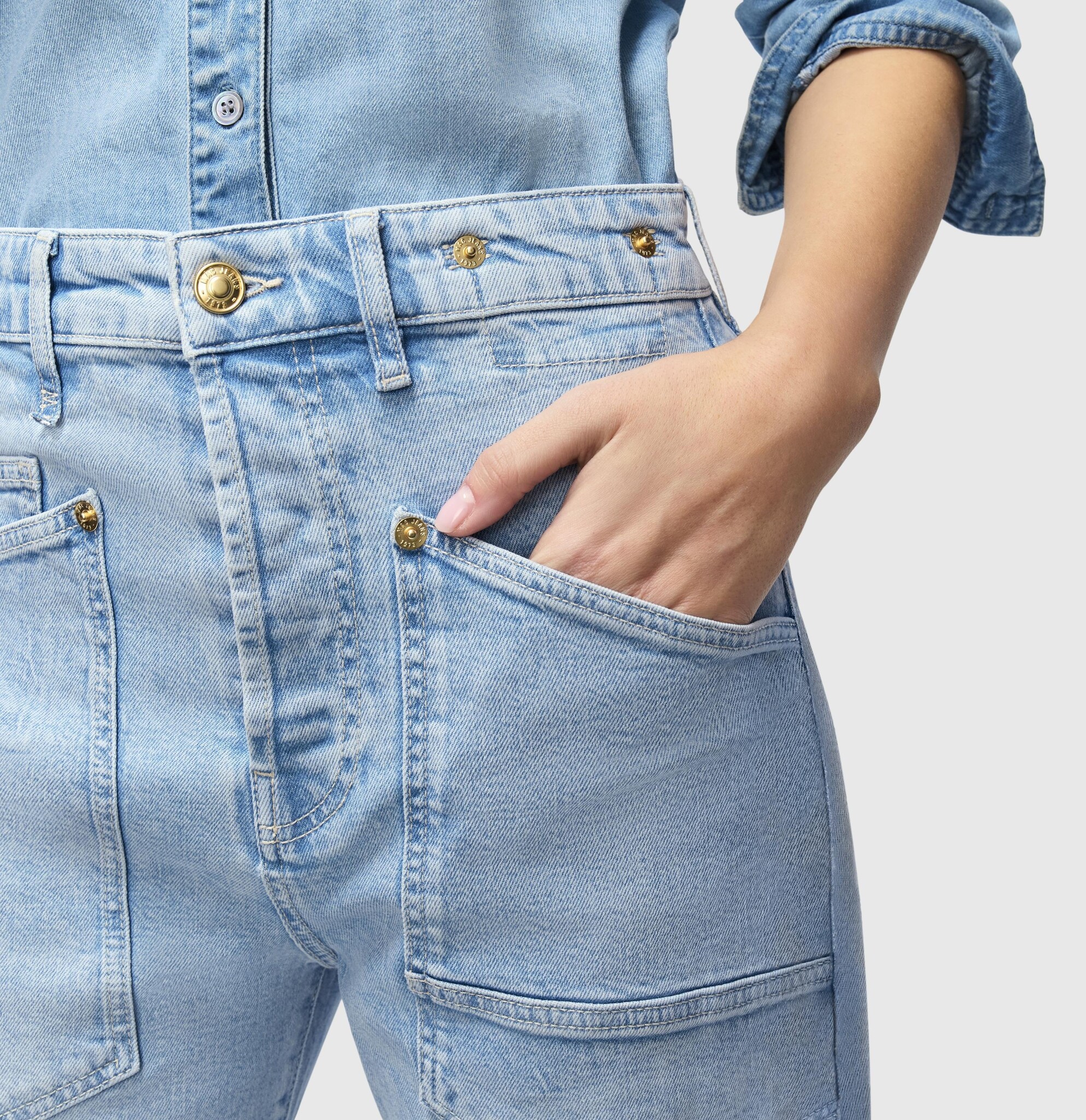 Mac Jeans Baggy Straight. Dames Mac jeans met een relaxed fit, variabele taillehoogte en rechte broekspijpen. Deze Mac Jeans heeft een baggy style, wordt gesloten met een lange knoopsluiting en is gemaakt van een materiaalmix met gerecycled katoen.