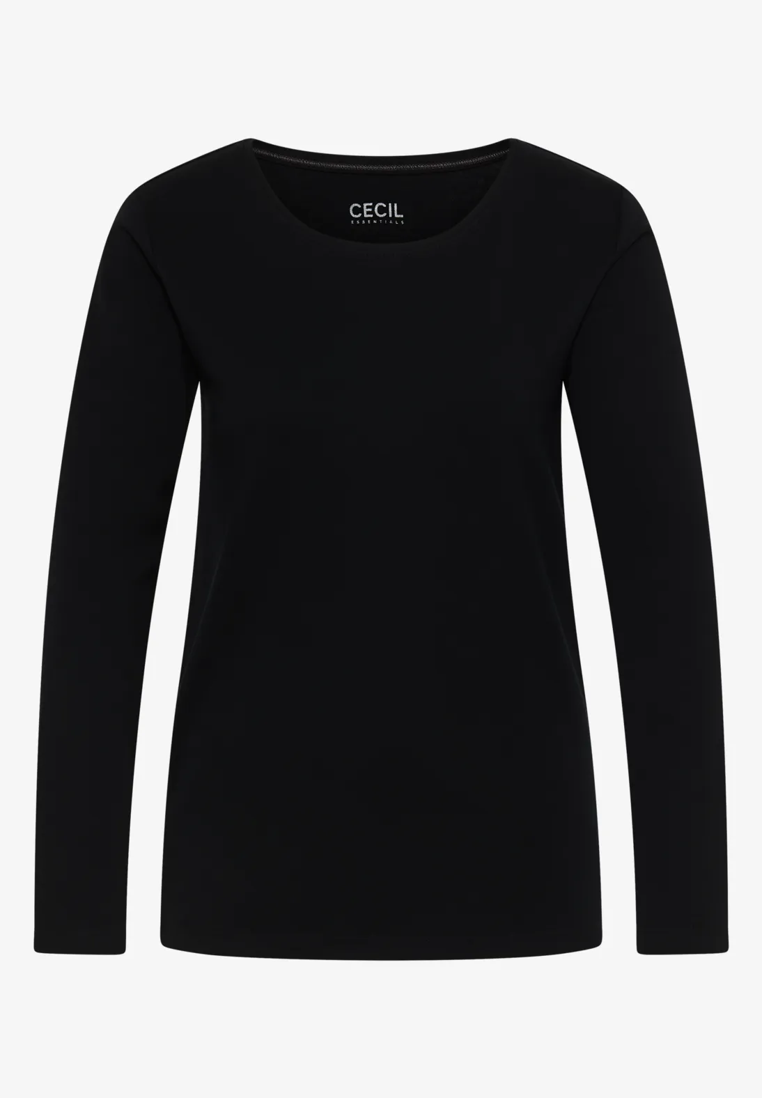 Cecil Pia. Cecil basis shirt met lange mouwen en ronde hals. De ronde hals is afgewerkt met een ribgebreid detail. Dit Cecil shirt is gemaakt van heerlijk zacht biologisch katoen. Het biologische katoen wordt gekenmerkt door het feit dat het niet geteeld wordt met pesticiden of chemicaliën. Deze Cecil basic is de basis voor iedere kledingkast.