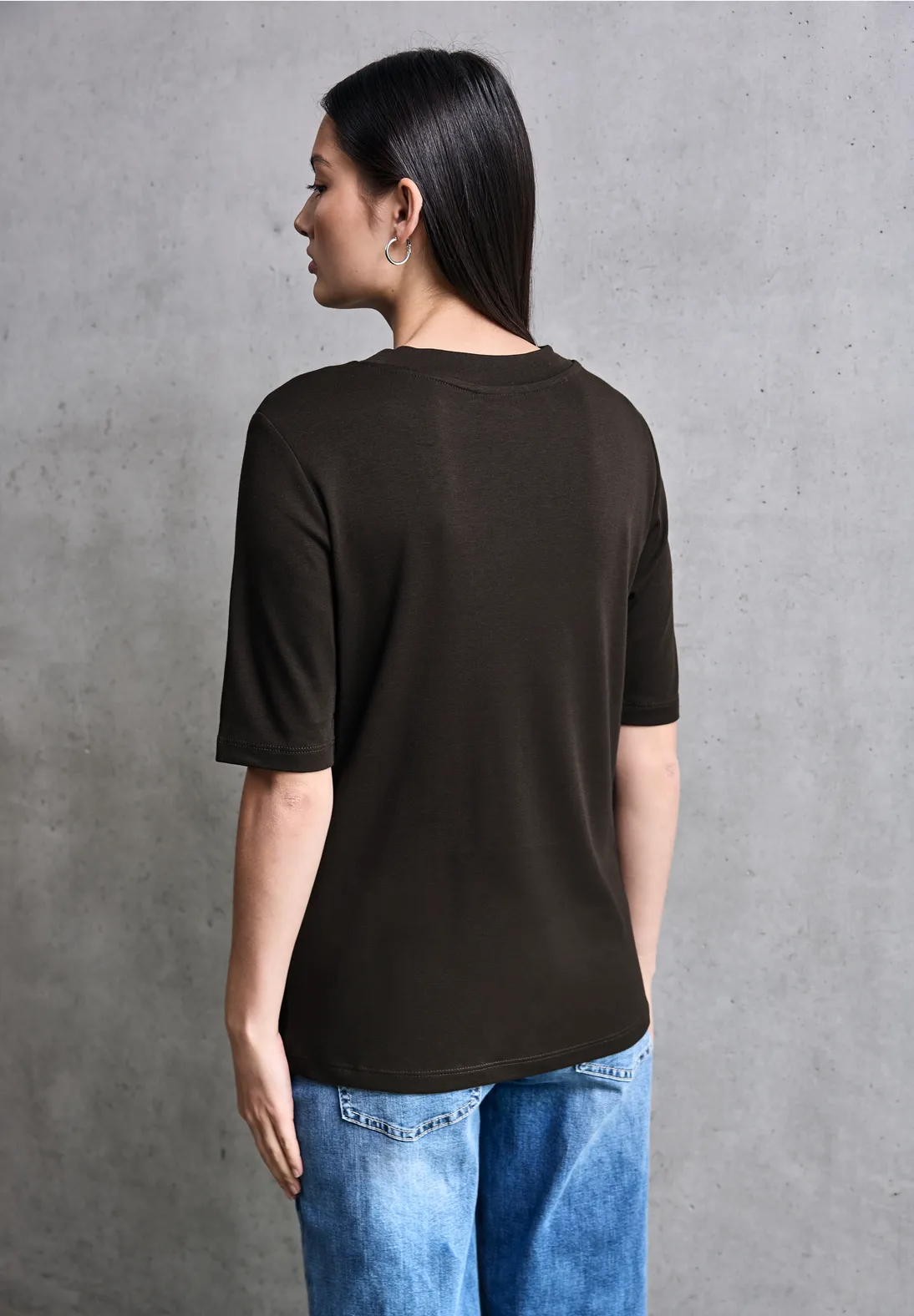 Street One Studio effen basic shirt met korte mouwen en een ronde hals. Dit Street One Studio shirt is een veelzijdige musthave en is gemaakt van een zachte katoen-modalmix.