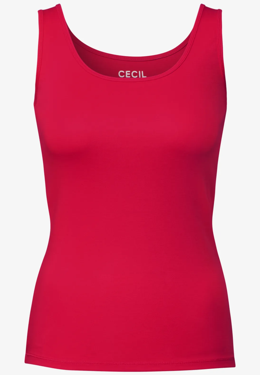 Cecil Linda. Basic Cecil tanktop met comfortabele, brede bandjes en een ronde hals. Deze Cecil top is gemaakt van een zachte jersey van zacht, biologisch geteeld katoen.