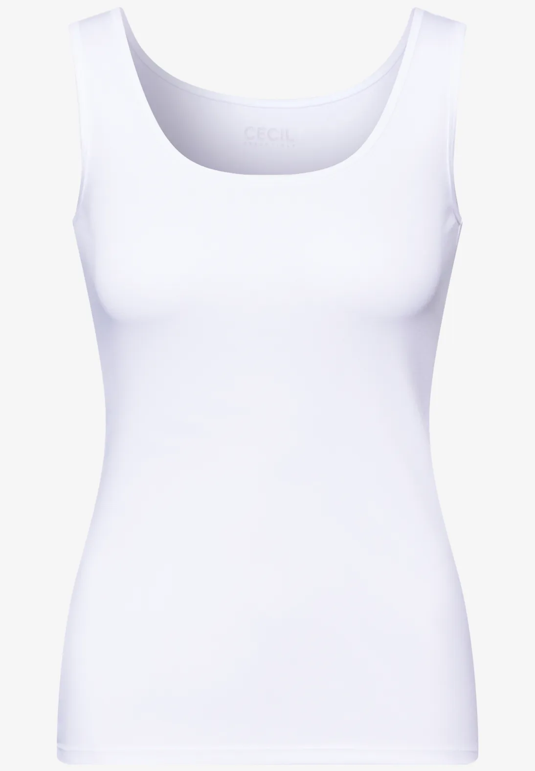 Cecil Linda. Basic Cecil tanktop met comfortabele, brede bandjes en een ronde hals. Deze Cecil top is gemaakt van een zachte jersey van zacht, biologisch geteeld katoen.