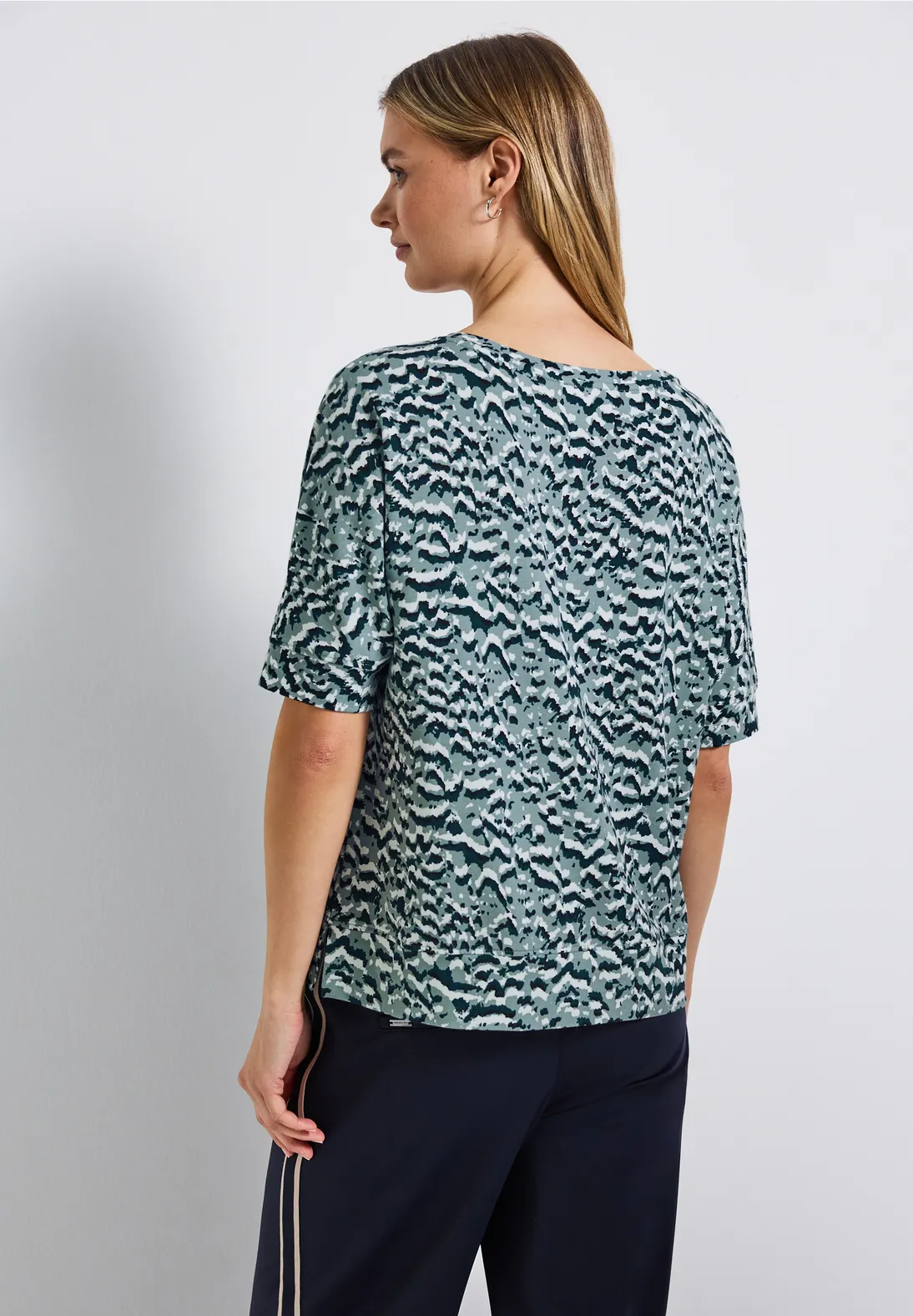 Street One shirt met korte batwing mouwen, een ronde halslijn en een grafische print. Dit Cecil shirt is gemaakt van een zachte katoen-modalmix met comfortabeles stretch.