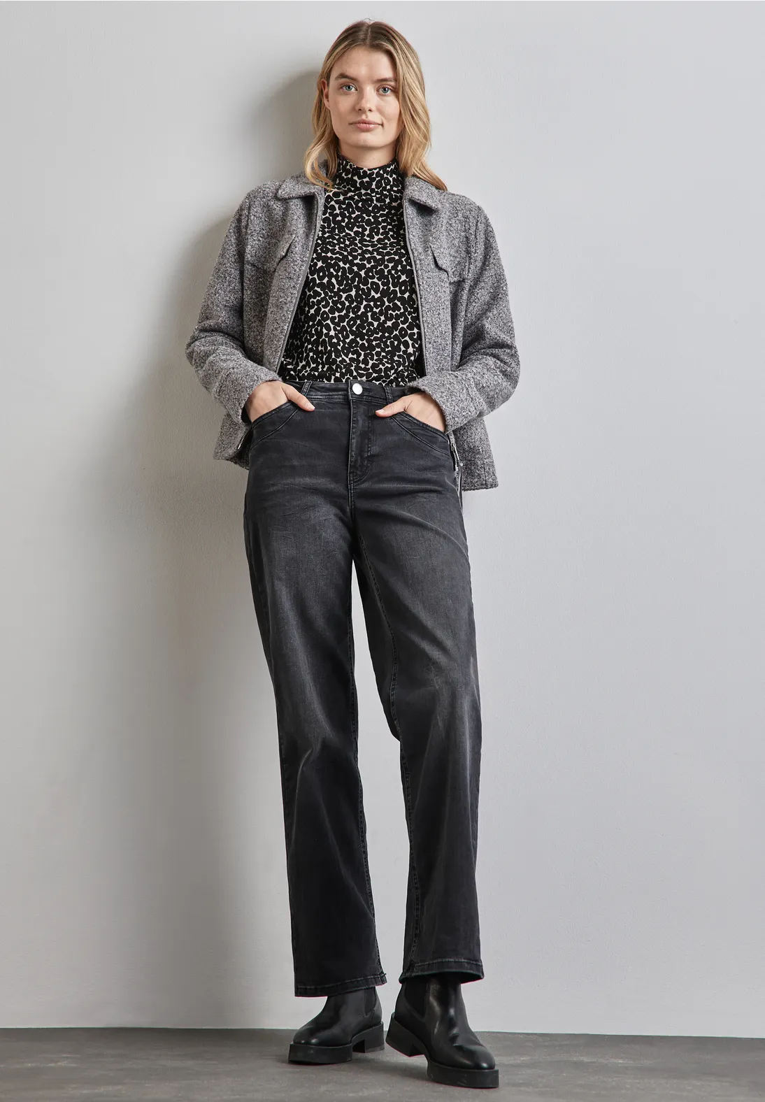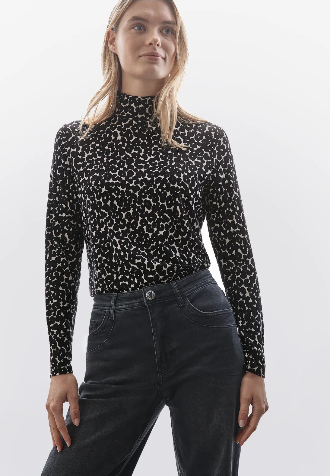 Street One shirt met lange mouwen, een col en een luipaardmotief. Dit Street One shirt is gemaakt van een viscosemix met comfortabele stretch.