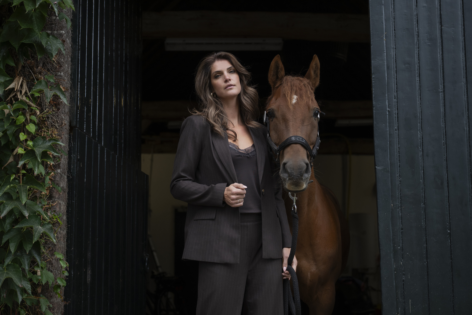 De "Madde" blazer van Elvira Collections is een lange, stijlvolle blazer in een rijke chocoladebruine tint met een klassieke krijtstreep. Het elegante ontwerp wordt versterkt door een reverskraag, een sluiting met één knoop en decoratieve paspelzakken op de voorzijde. Dankzij de gladde voering is de blazer comfortabel in het dragen, terwijl de rechte, langere pasvorm zorgt voor een tijdloze, vrouwelijke uitstraling.
