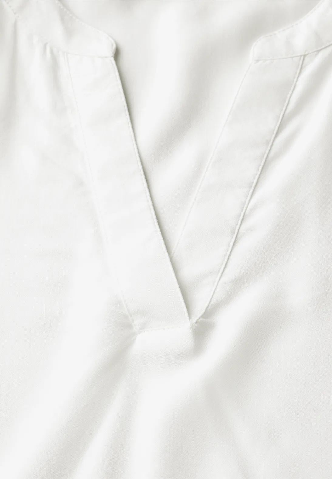 Effen Street One blouse met korte mouwen en een ronde hals met split. Deze Street One blouse is gemakkelijk te combineren en gemaakt van zachte viscose.