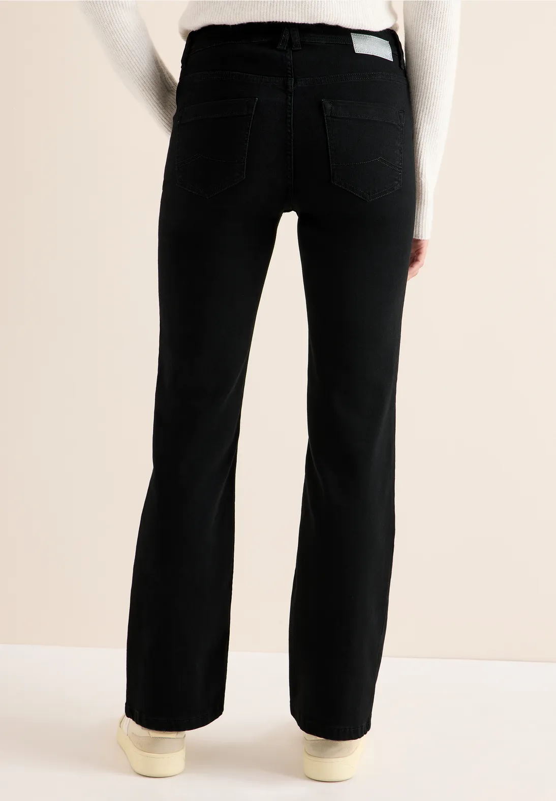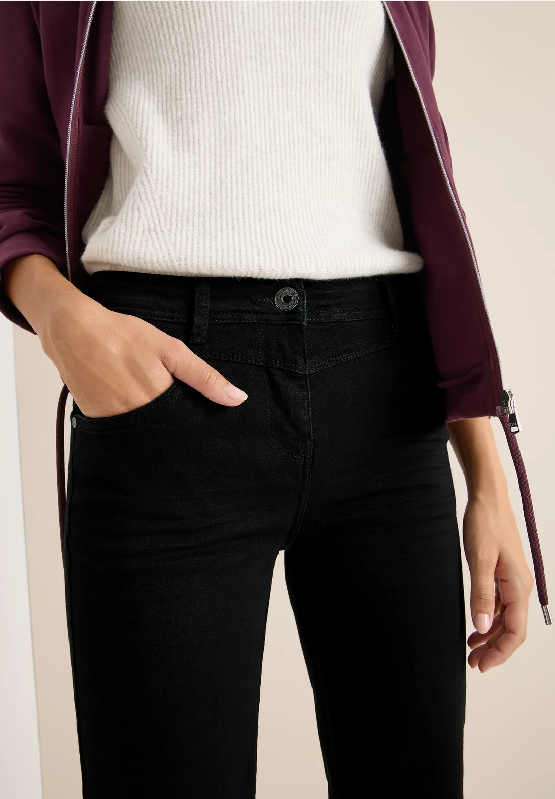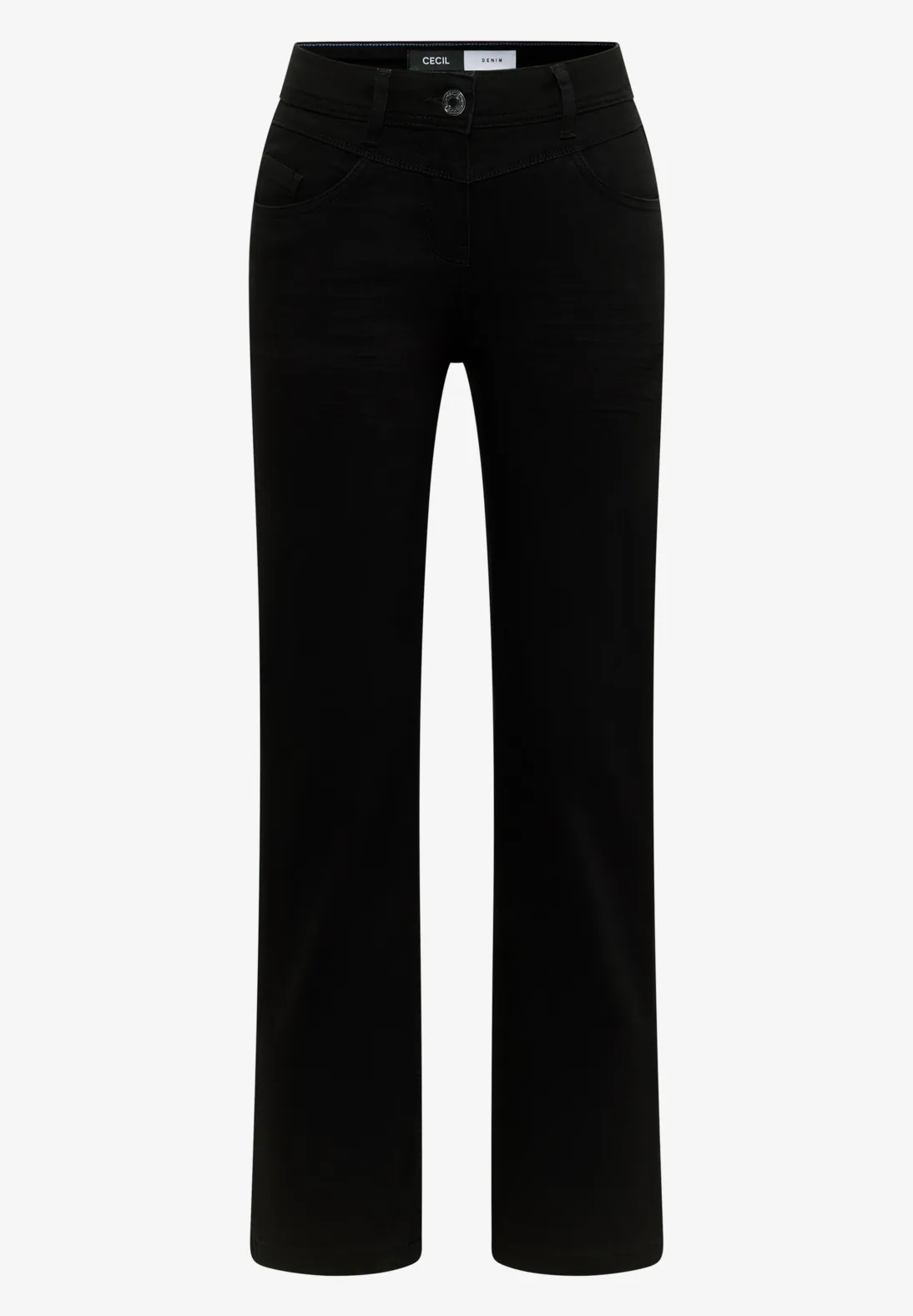 Deze zwarte bootcut jeans van CECIL geeft jouw outfit een moderne en vrouwelijke uitstraling. De Slim Fit pasvorm, High Waist en licht uitlopende pijpen zorgen voor een flatterend silhouet dat zowel tijdloos als trendy is.