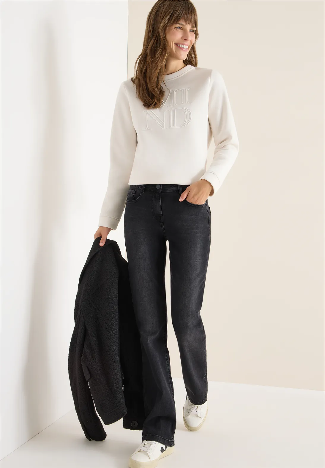 De CECIL Bootcut jeans in Toronto stijl biedt een vrouwelijke pasvorm met een trendy bootcut pijp. Dankzij de high waist en slim fit sluit deze zwarte washed denim perfect aan en geeft het een moderne uitstraling. De stretchstof zorgt voor comfort en bewegingsvrijheid. Een tijdloze jeans die in elke garderobe past.