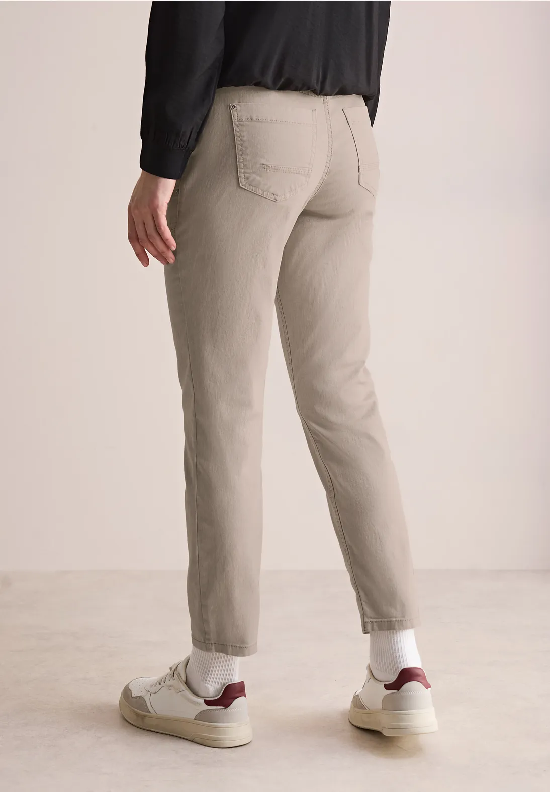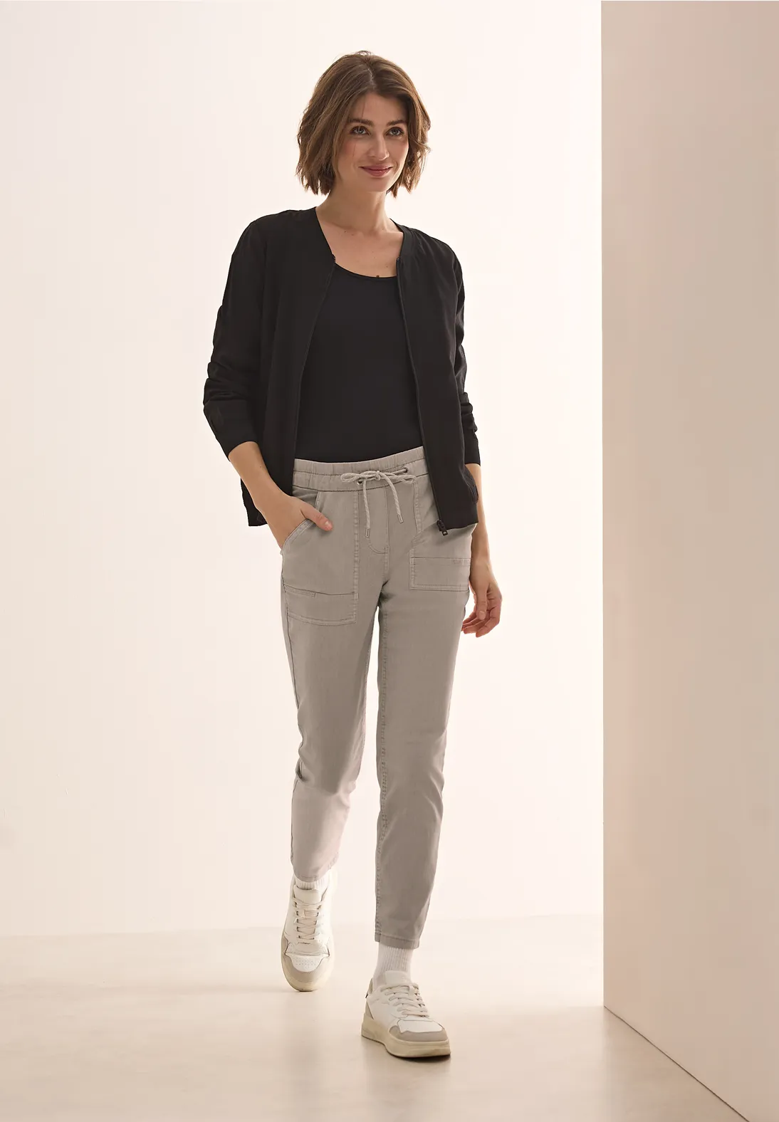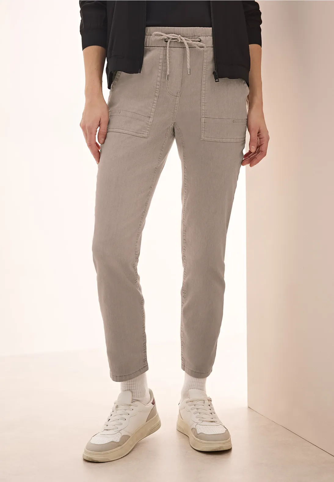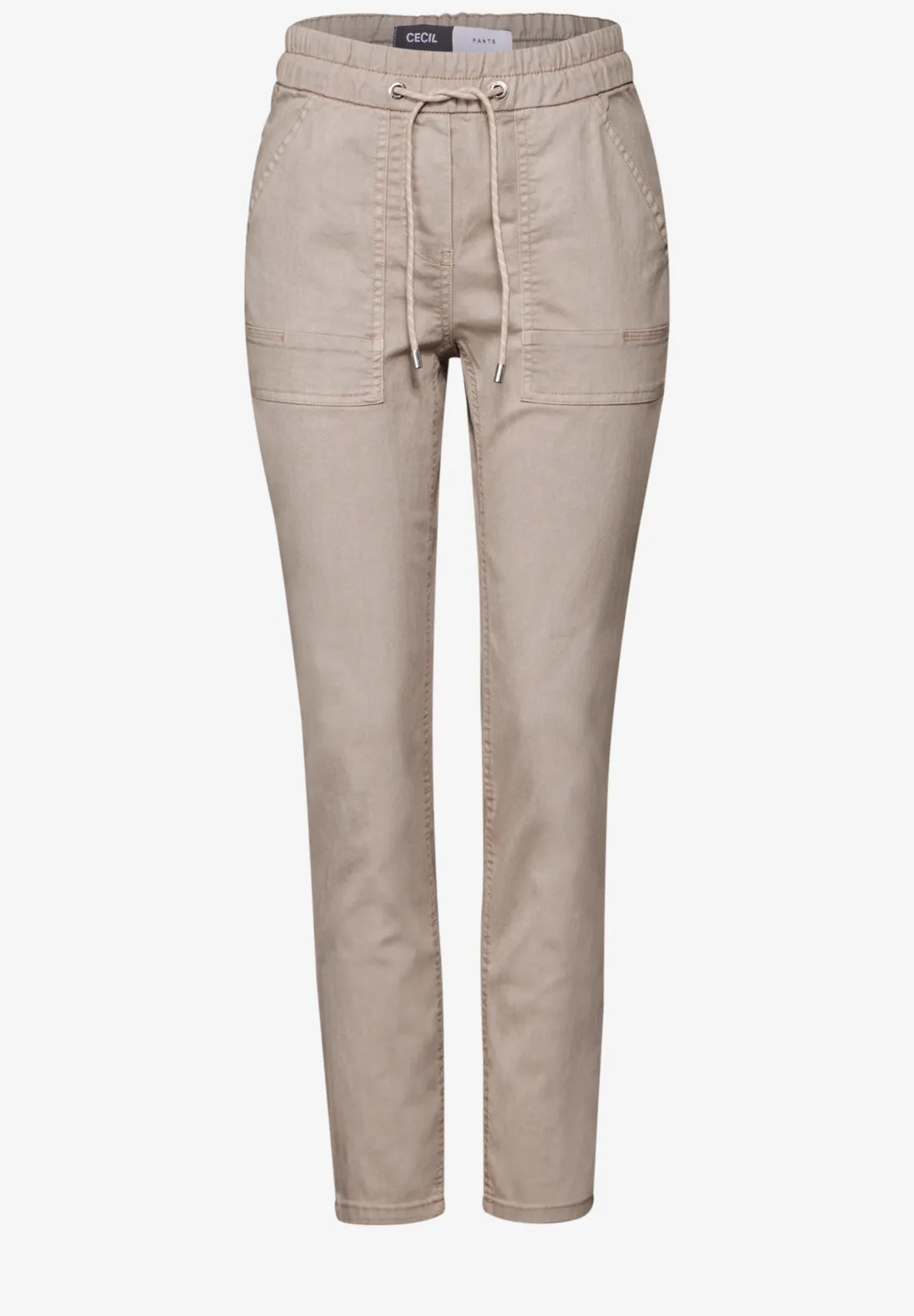 Cecil Tracey. Cecil broek met een casual fit, middelhoge taille en smalle broekspijpen. Deze Cecil broek in joggingstijl heeft een elastische tailleband met trekkoord en sportieve steekzakken. Gemaakt van een elastische materiaalmix.