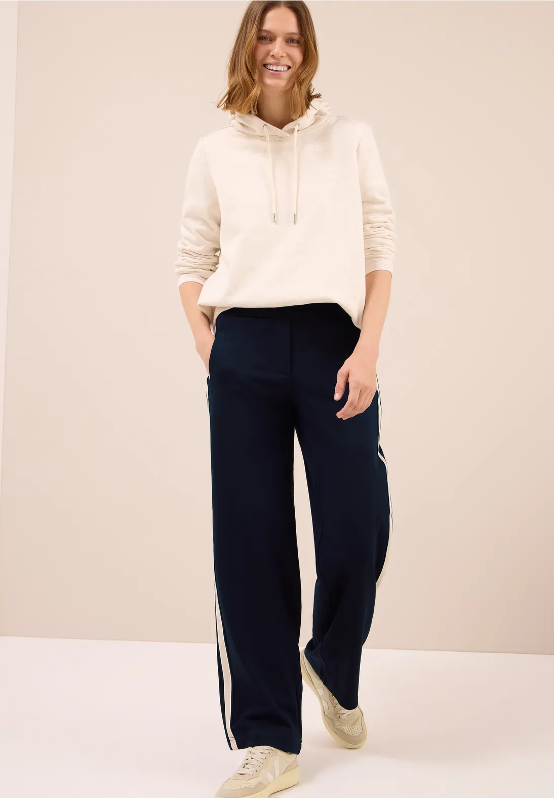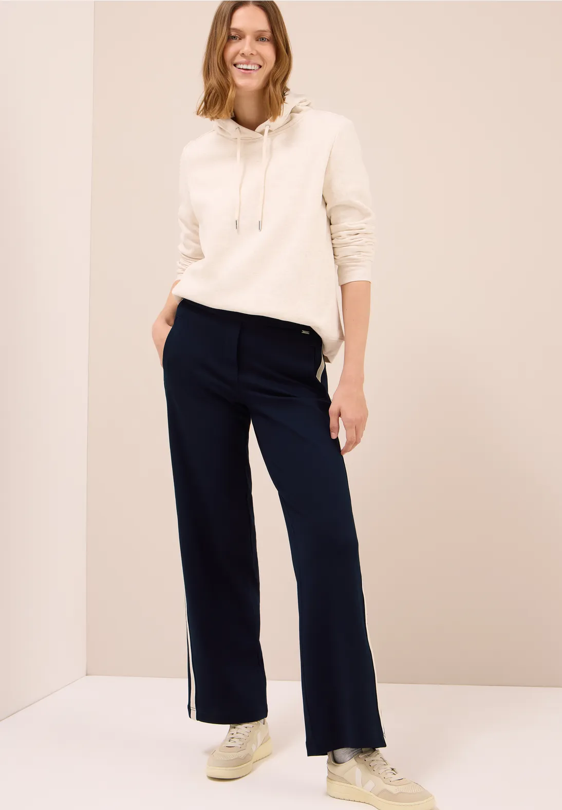 Cecil Neele. Cecil broek met een loose fit, hoge taille en wijde broekspijpen met opvallende tapedetail aan de zijkant. Deze Cecil broek heeft een elastische tailleband en steekzakken.