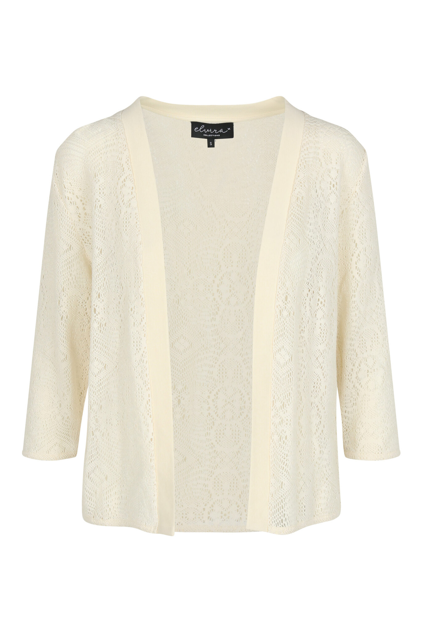 Elvira Collections Mila. Elvira Collections vest met 3/4-mouwen, een open model en een opengewerkt patroon.