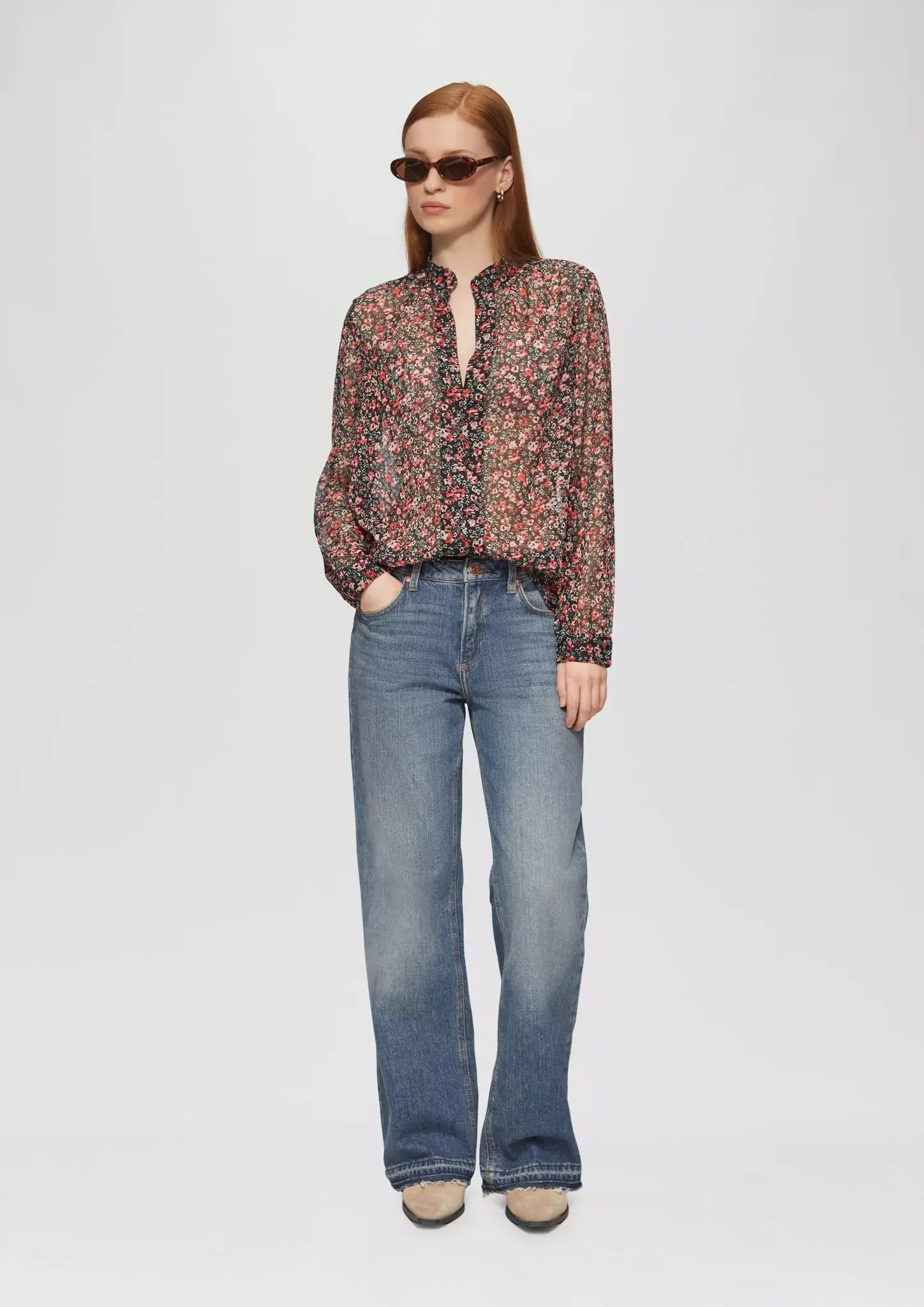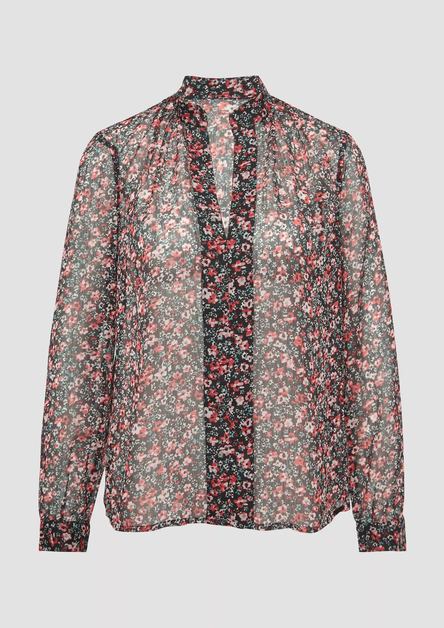 QS by S. Oliver blouse met lange mouwen, een V-hals en een allover bloemenprint. Deze QS blouse is gemaakt van semi-transparant chiffon. De lange mouwen zijn afgewerkt met smalle manchetten.