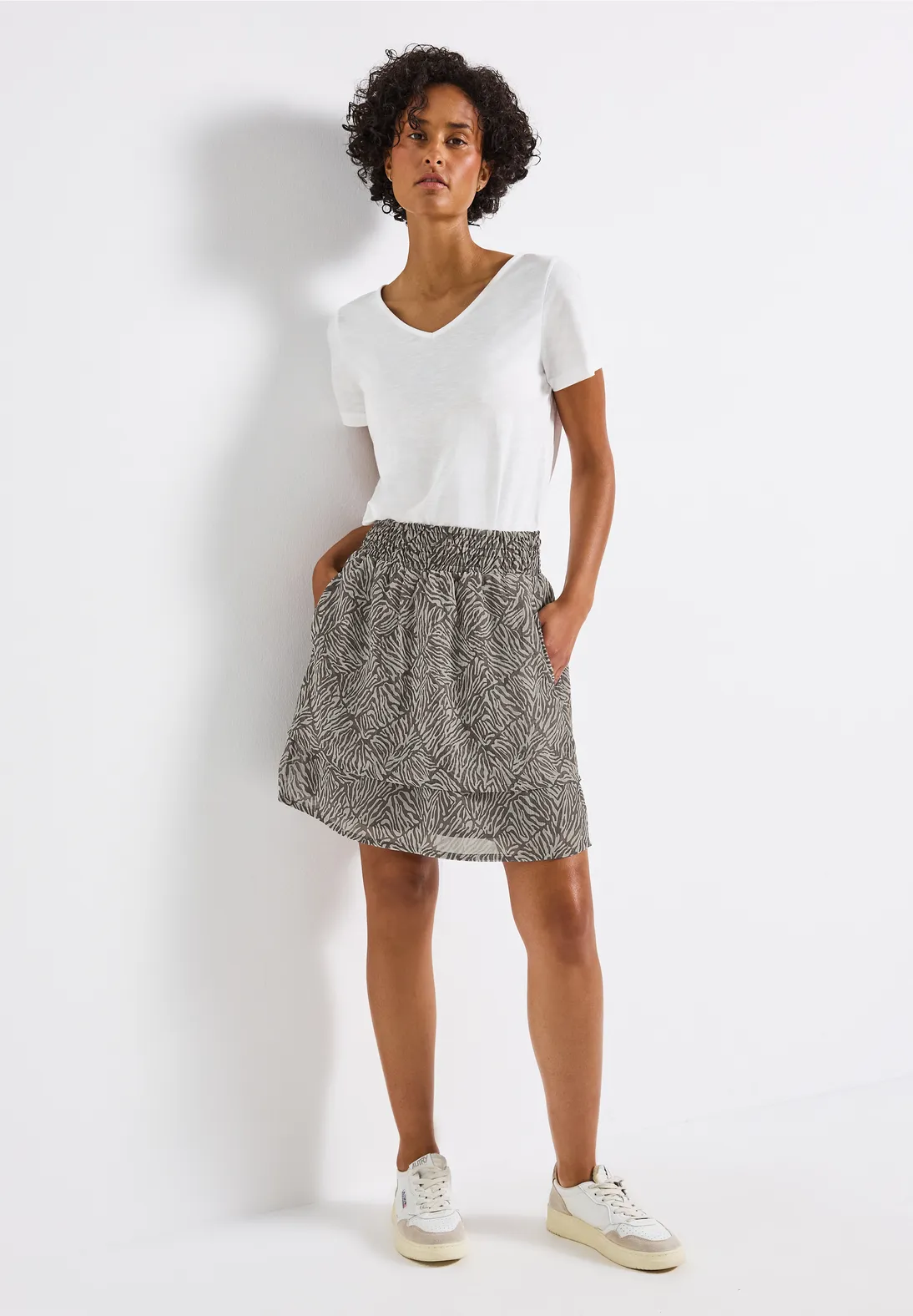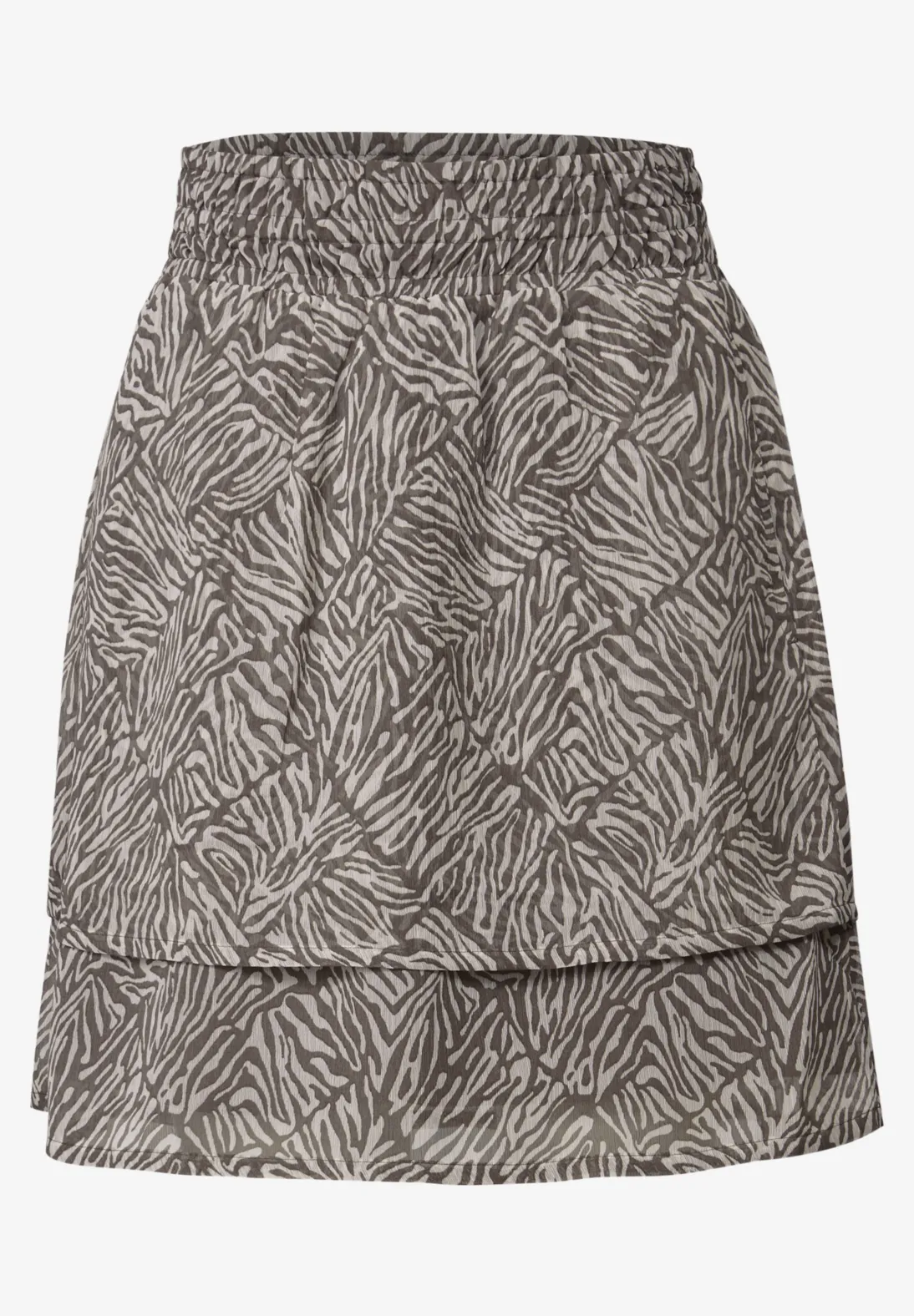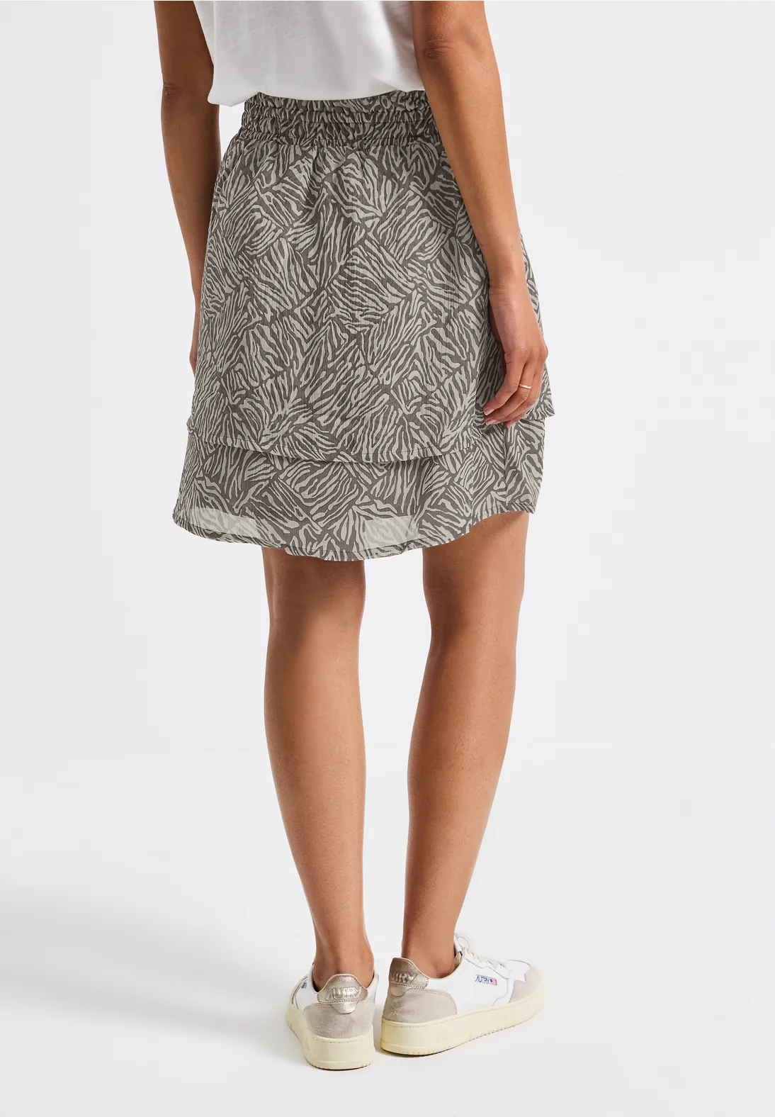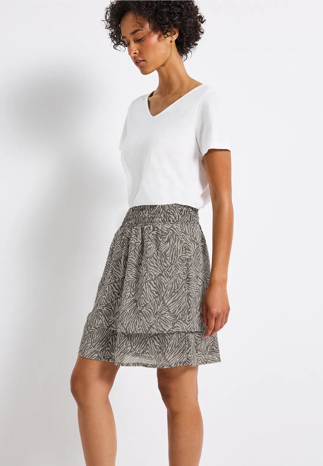 Street One rok met een elastische tailleband, steekzakken en een grafische print. Deze Street One rok heeft zwierende volants en is gemaakt van lichtgewicht chiffon en een binnenvoering van modal.