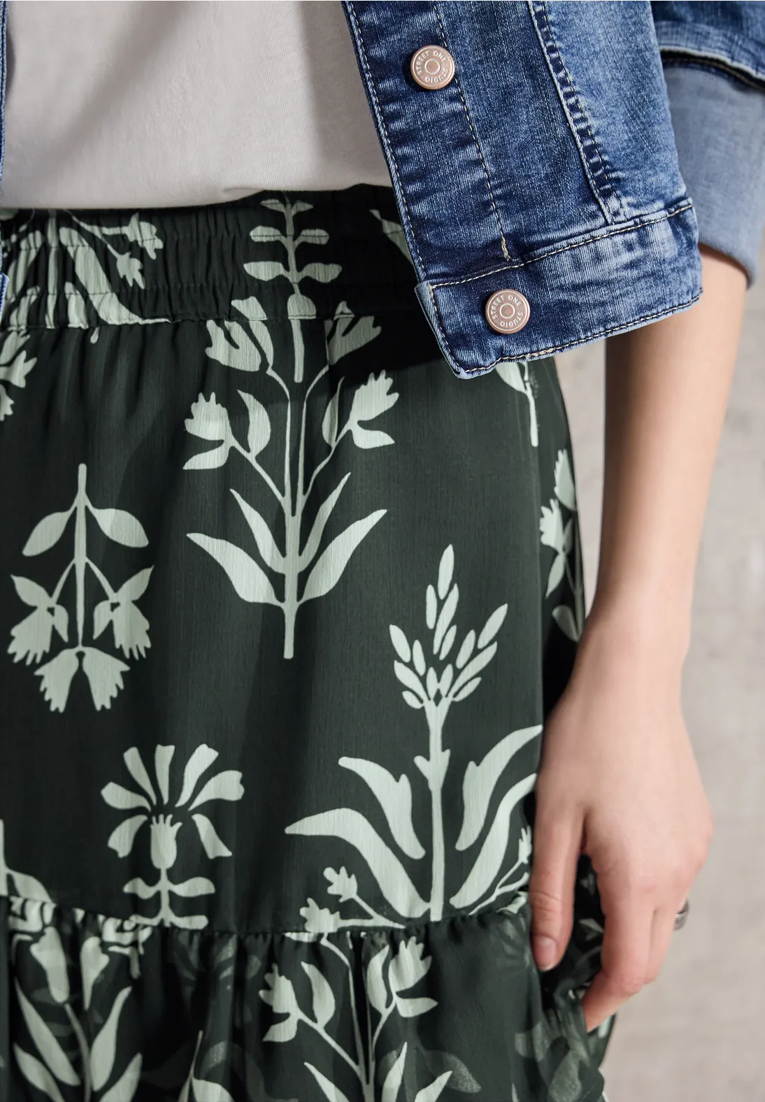 Street One Studio chiffon rok met decoratieve volants en een bloemenprint. Deze Street One Studio rok heeft een zacht gedrappeerde look en steekzakken. De elastische tailleband zorgt voor een perfecte pasvorm.