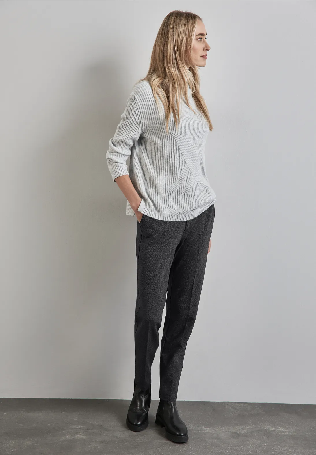 Zachte Street One chino broek met een casual fit, een middelhoge taille en smalle broekspijpen. Deze Street One broek heeft een gemêleerde look en steekzakken.