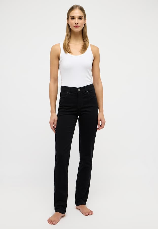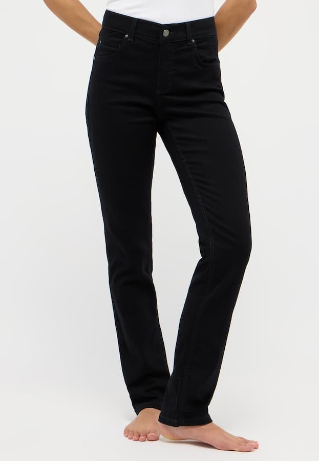 Angels Skinny Cici. Angels jeans met een slim fit, hoge taille en rechte broekspijpen. Deze broek is gemaakt met extra stretch voor een optimale pasvorm. Deze everblack broek blijft ook na meerdere malen wassen diep zwart.