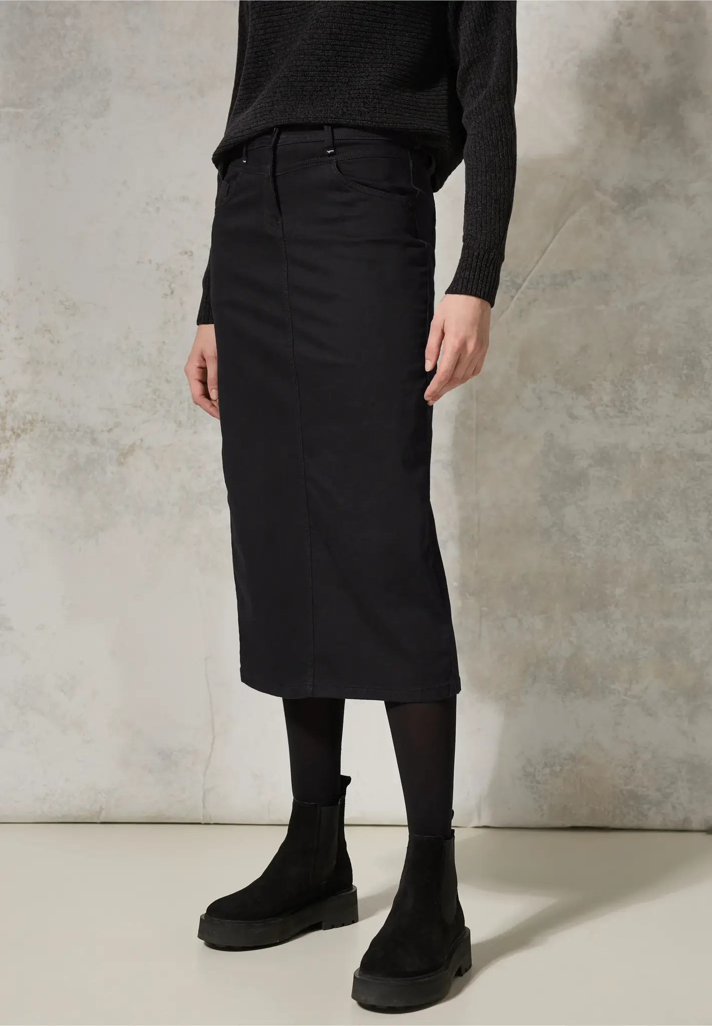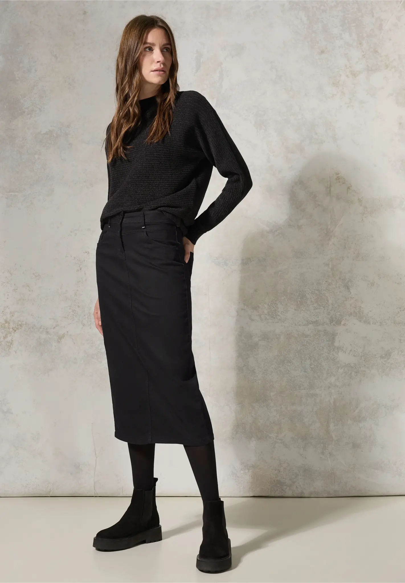 Cecil jeansrok met een grijze wassing en een moderne midi-lengte. Deze Cecil rok is gemaakt van hoogwaardig denim materiaal.