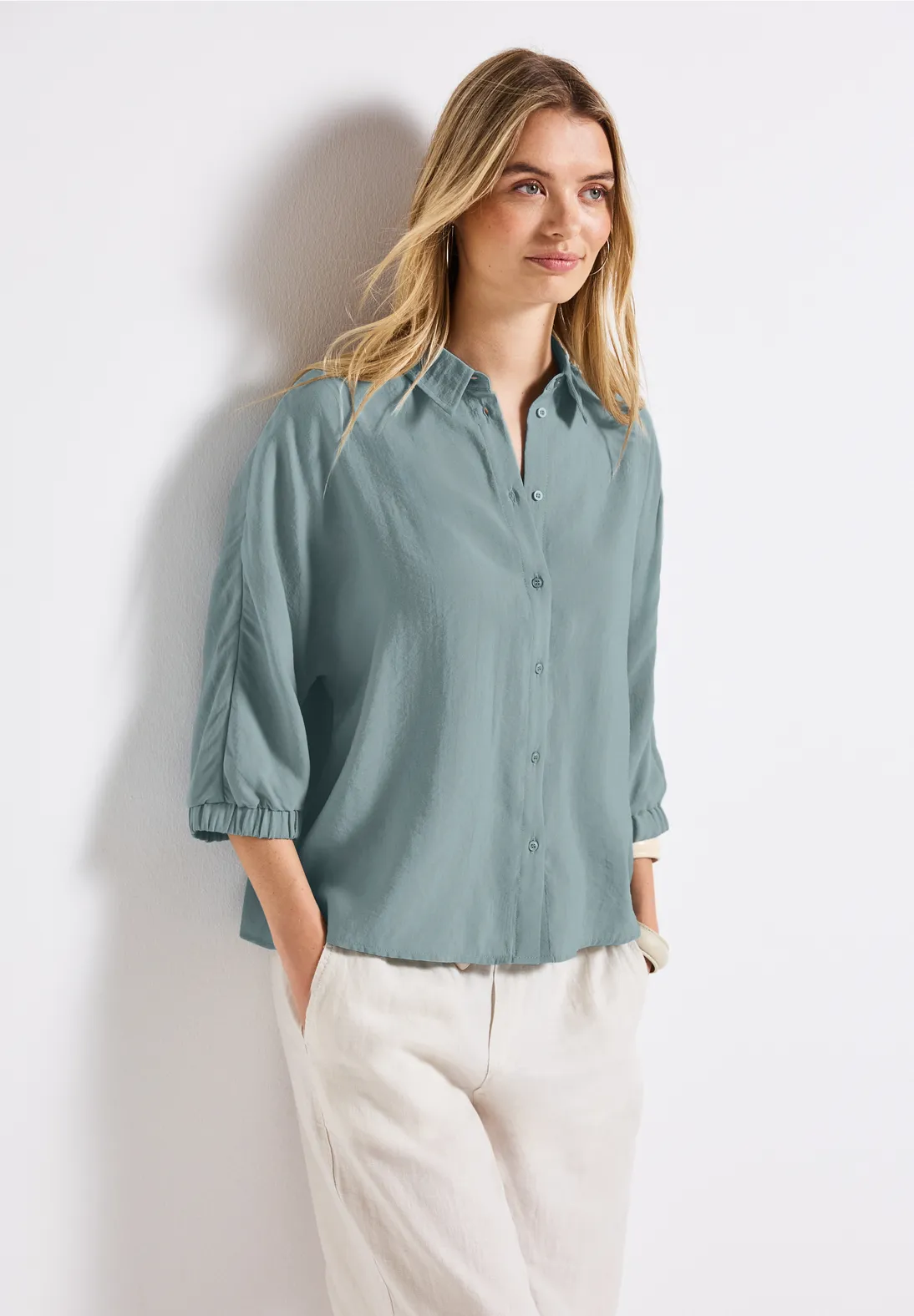 Street One blouse met 3/4-mouwen, een overhemdkraag en een zijdeachtige glans. Deze Street One mouwen heeft elastische manchetten en is gemaakt van een lichtgewicht modalmix.