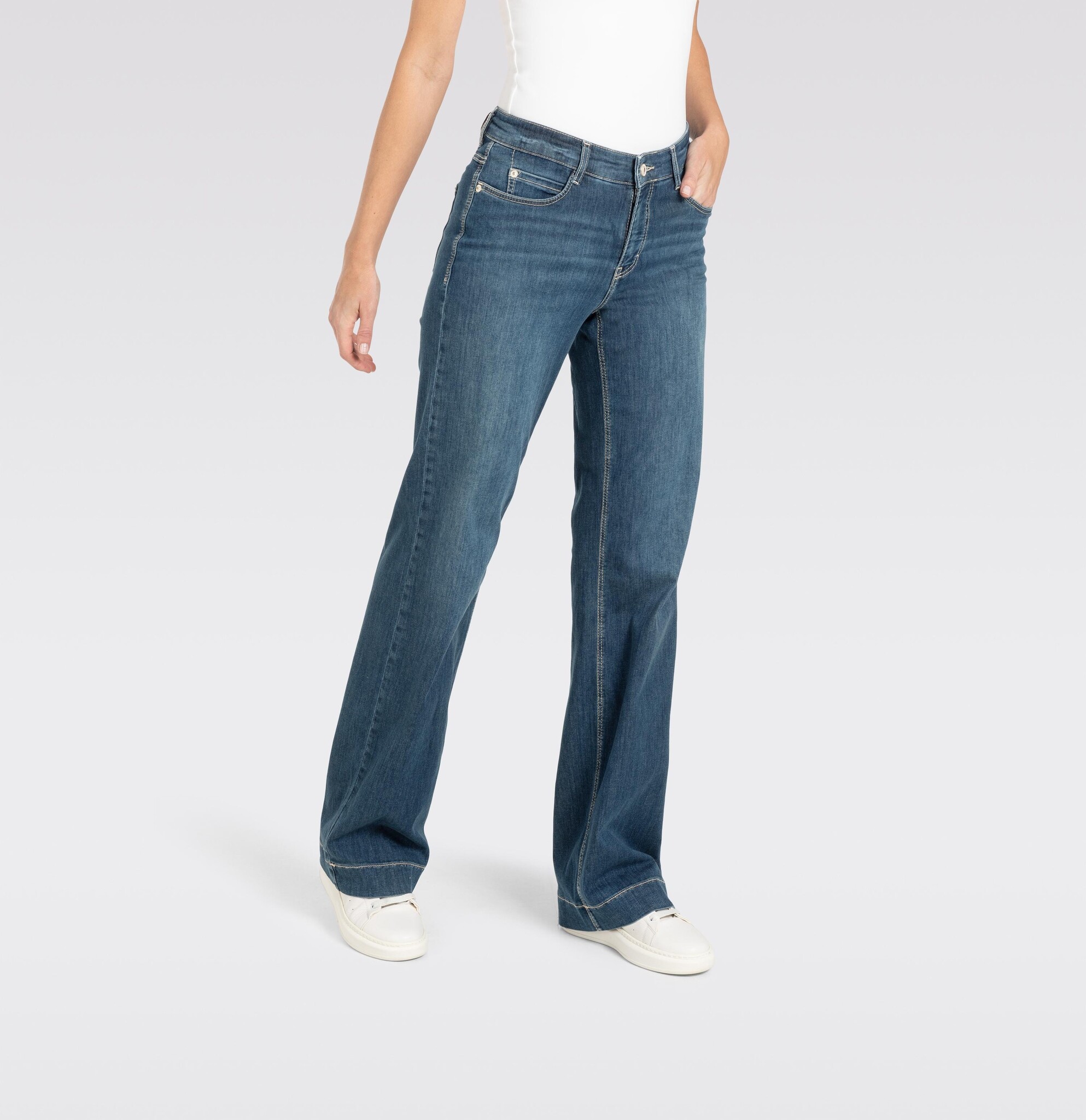 Mac Jeans Dream Wide Authentic. Mac Jeans met een straight fit, een normale taillehoogte en een brede, rechte broekspijp. Deze Mac Jeans heeft een figuurvormend shaping effect en is gemaakt van een elastische hyperstretch kwaliteit met een vormvaste rek. Het materiaal is licht van gewicht.