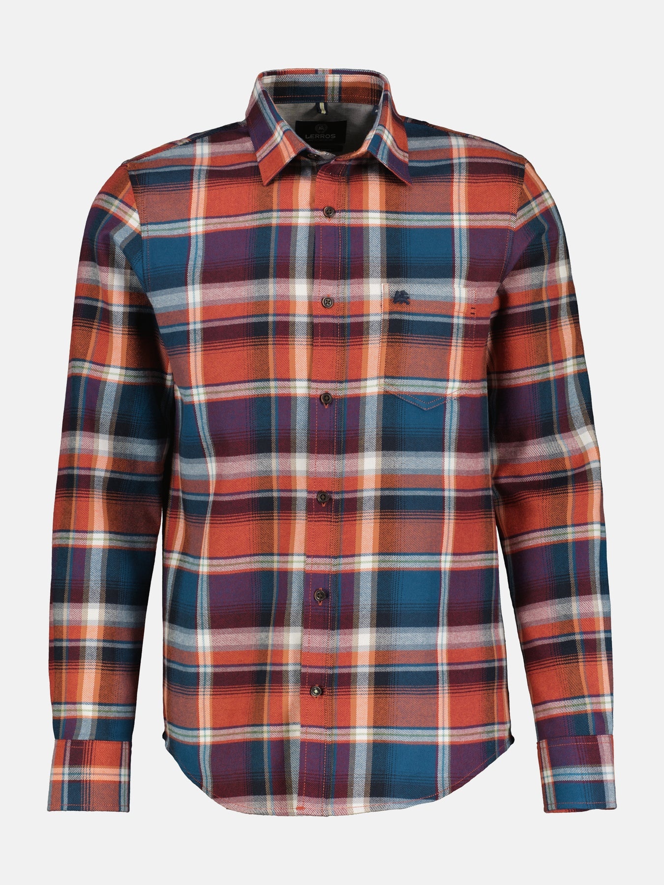Lerros overhemd met lange mouwen, een kraag en een ruitprint. Dit Lerros overhemd heeft een borstzak en is gemaakt van zacht katoen flanel.