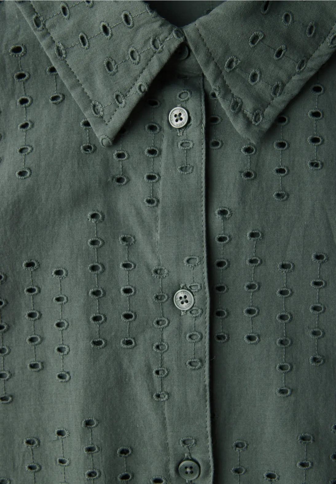 Denim/JeansRokken/JurkenVesten/TruienJassen/MantelsBlazersBeschrijvingGeborduurde Blouse - Dark Balmy Khaki