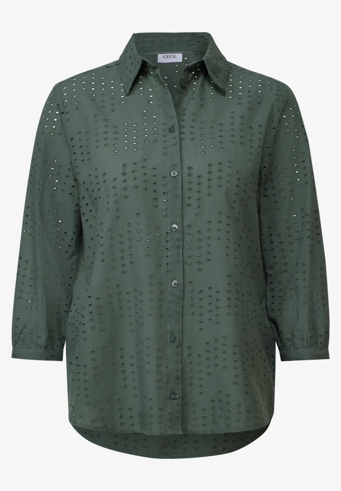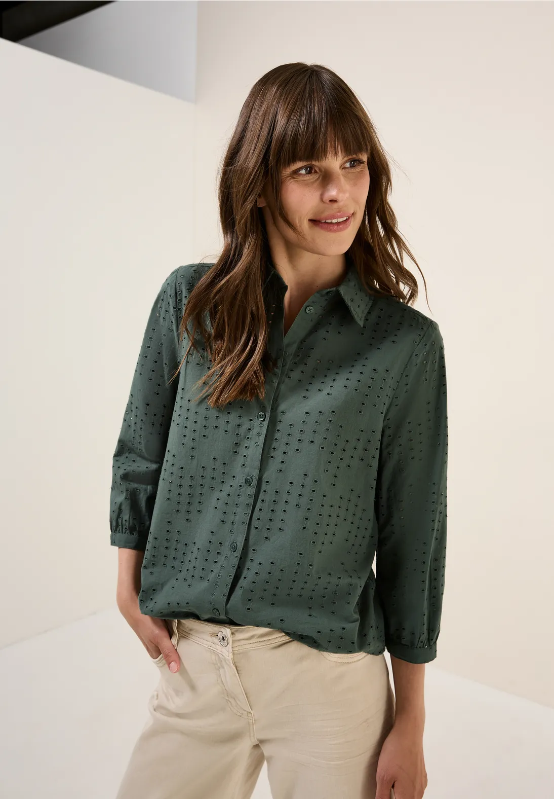 Cecil blouse met 3/4-mouwen, een kraag en een opengewerkt borduursel. Deze Cecil blouse is gemaakt van zuiver katoen.