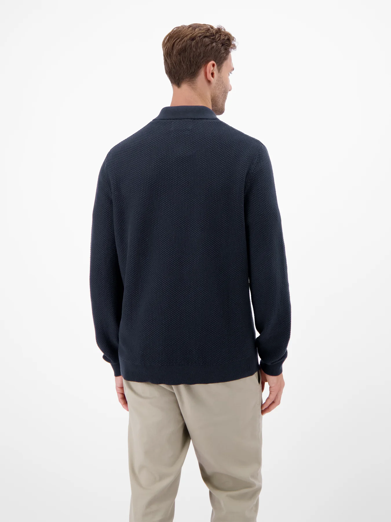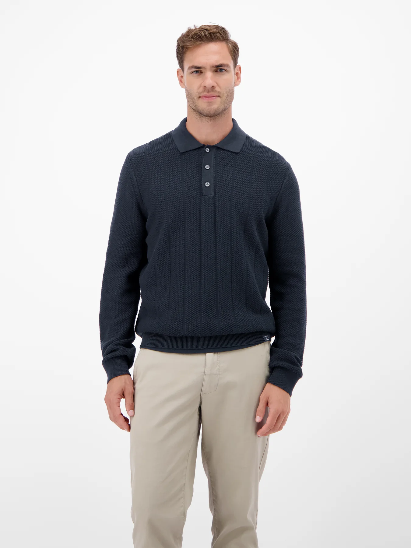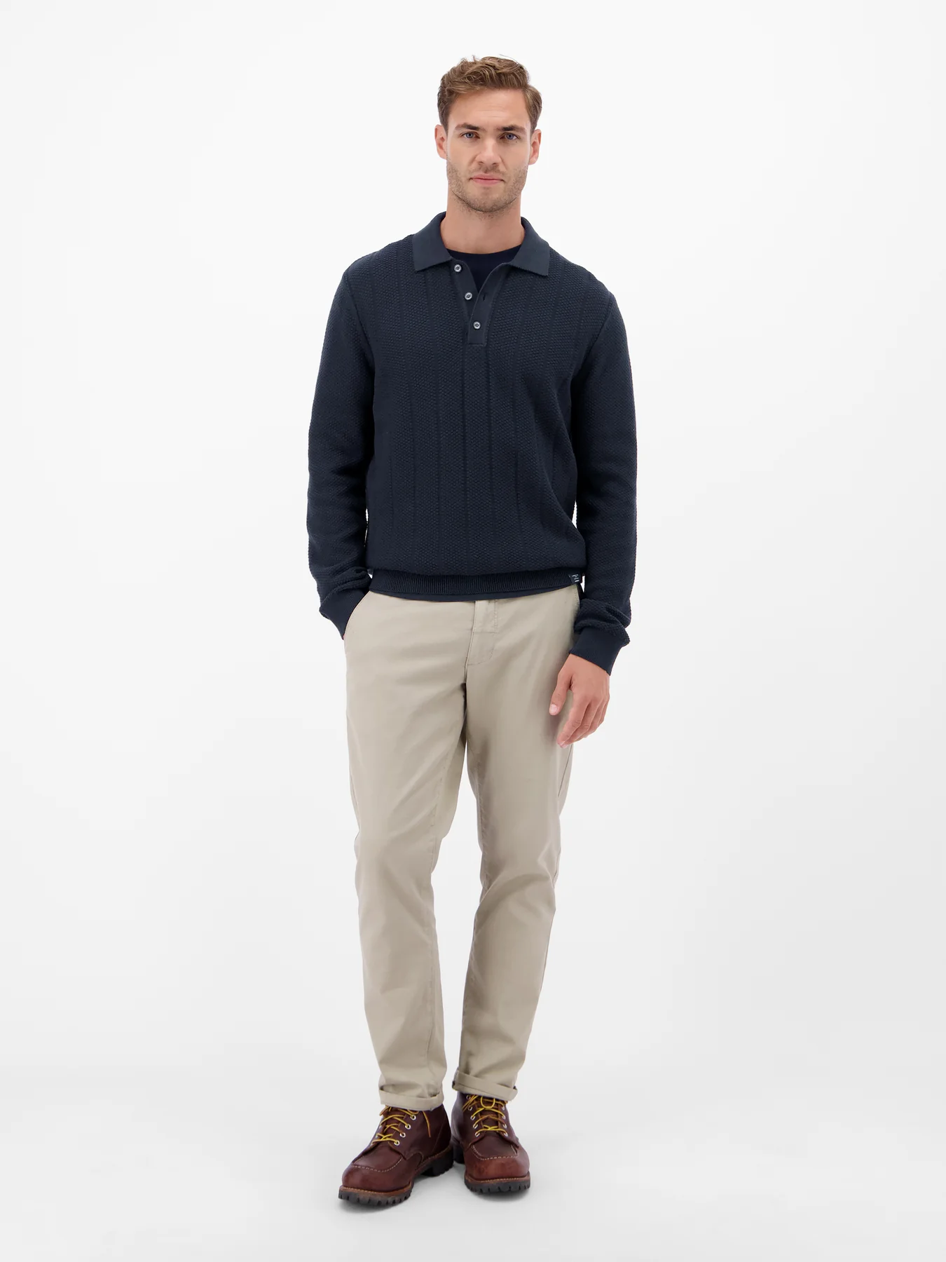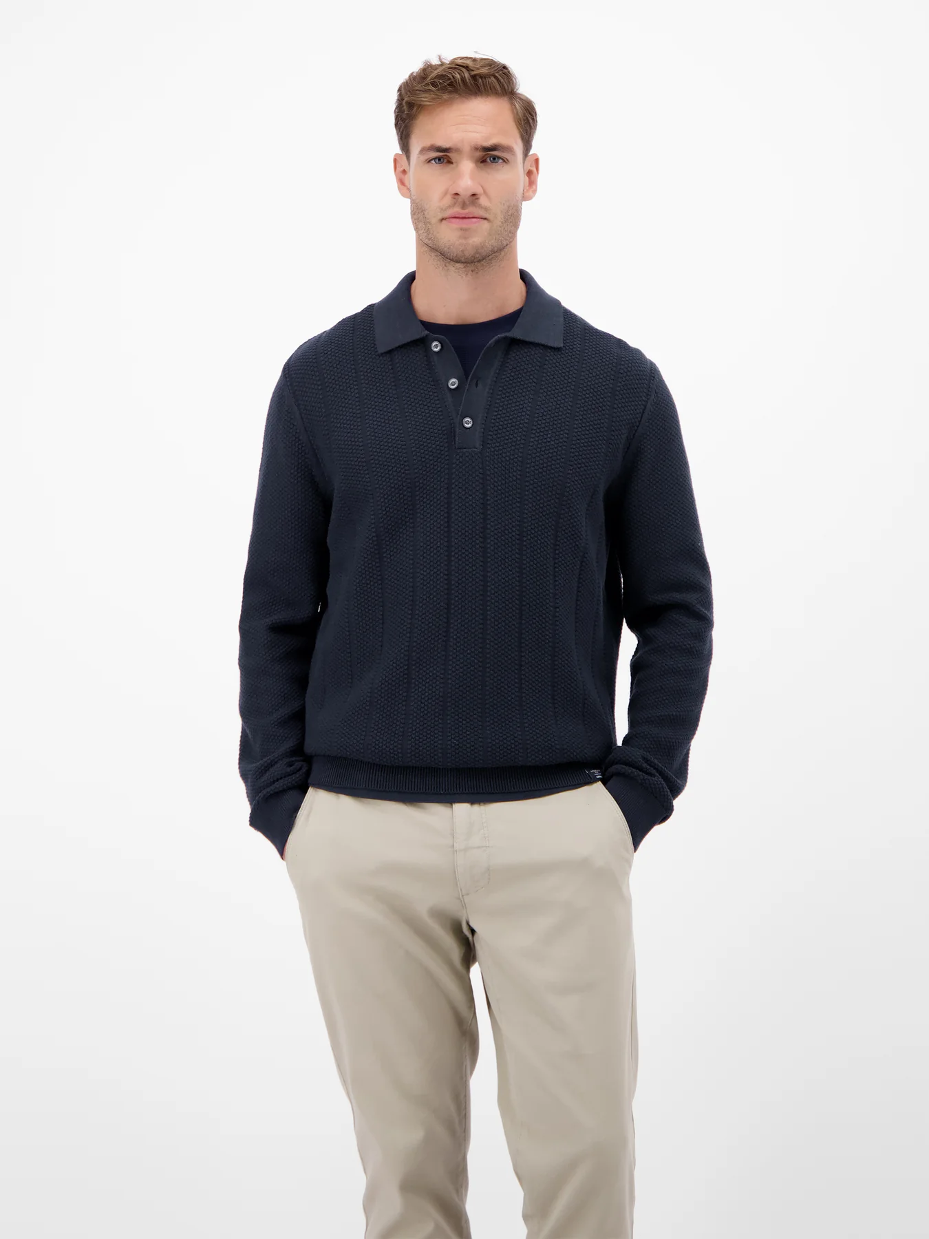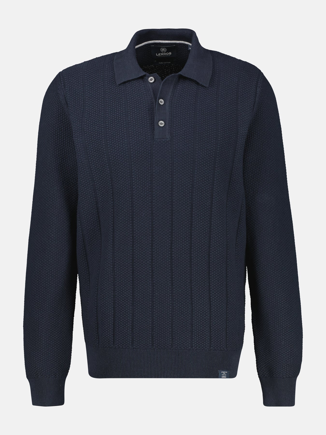 Deze stijlvolle gebreide polo van LERROS in Classic Navy combineert een klassieke uitstraling met een sportieve twist. Het brede rib- en kabelpatroon geeft de trui structuur en karakter, terwijl de polokraag met knoopsluiting zorgt voor veelzijdigheid en warmte op frisse dagen. Gemaakt van 100% katoen, biedt deze trui een comfortabele pasvorm en ademend draagcomfort. Perfect voor het tussenseizoen of als warme laag in de winter.