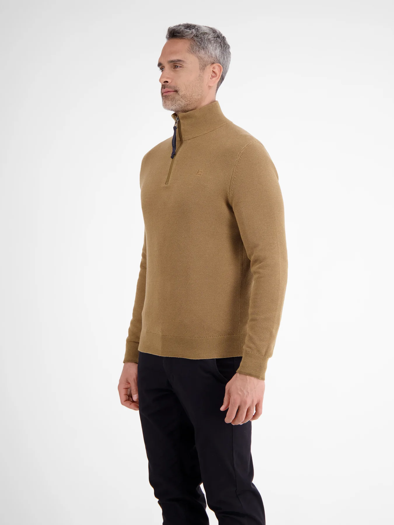 Gebreide Lerros trui met lange mouwen en een staande kraag met een ritssluiting. De sportieve ribboorden maken deze Lerros trui compleet.