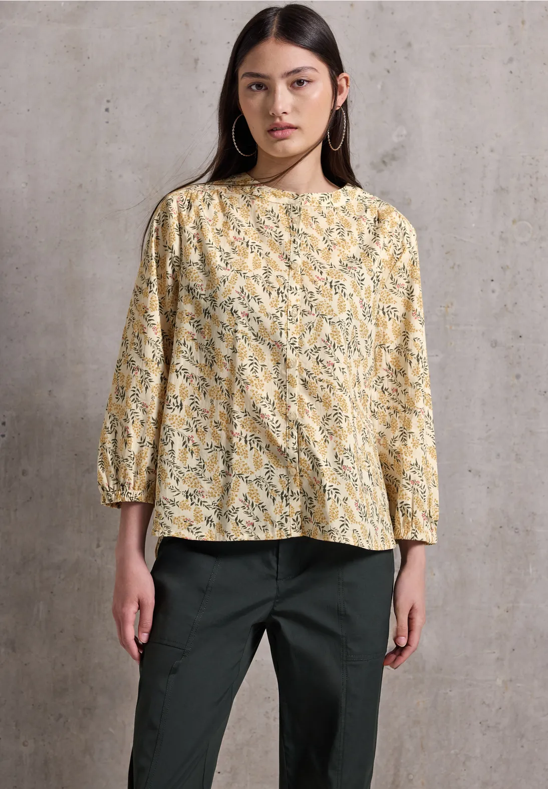 Street One Studio blouse met verkorte mouwen, een ronde hals en een allover print. De mouwen zijn afgewerkt met elastische manchetten. Deze Street One Studio blouse heeft een doorlopende knoopsluiting en is gemaakt van zuiver katoen.