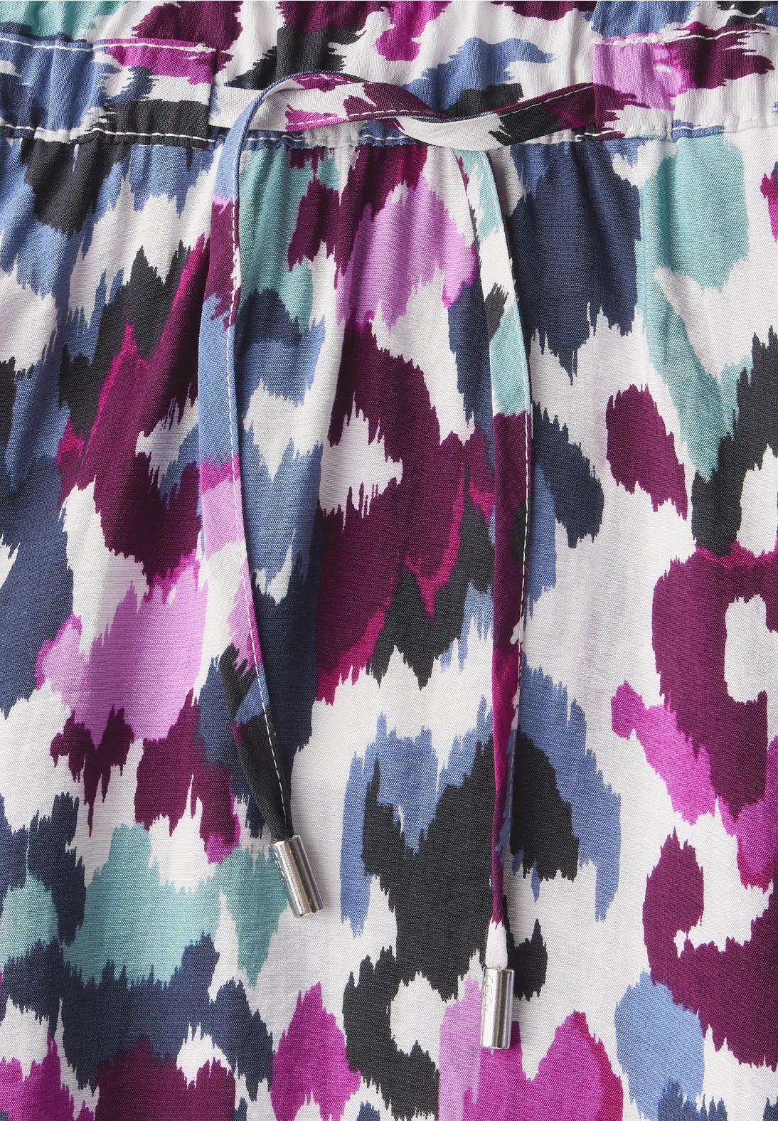 Zomerse Cecil rok met een grafisch patroon, midi-lengte en een elastische tailleband met trekkoord. Deze Cecil rok heeft steekzakken en is gemaakt van een lichtgewicht viscosemix.
