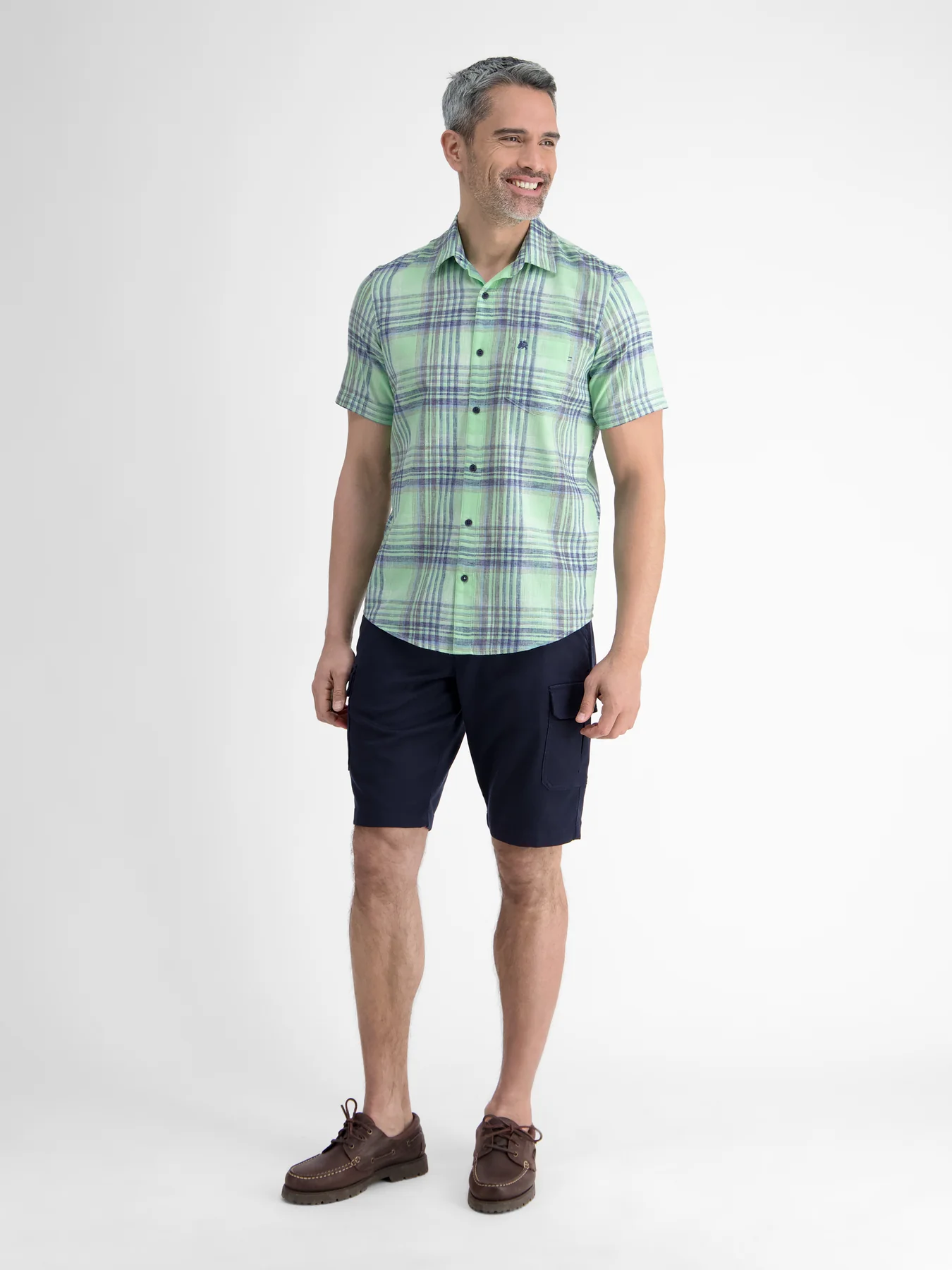 Lerros overhemd met korte mouwen, een kent kraag en zomerse ruit print.