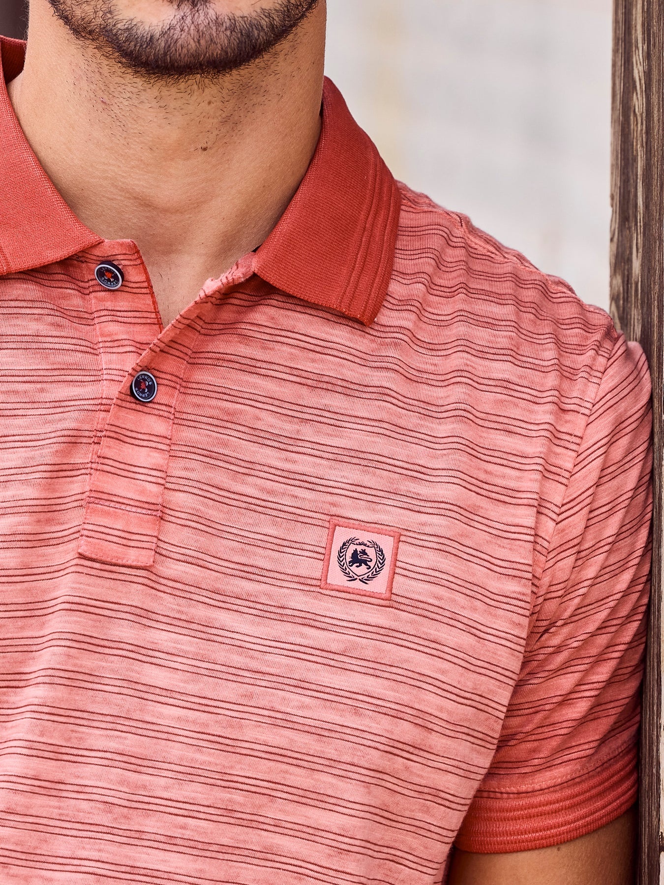 Denim/JeansRokken/JurkenVesten/TruienJassen/MantelsBlazersBeschrijvingGestreept Poloshirt - Earth Red